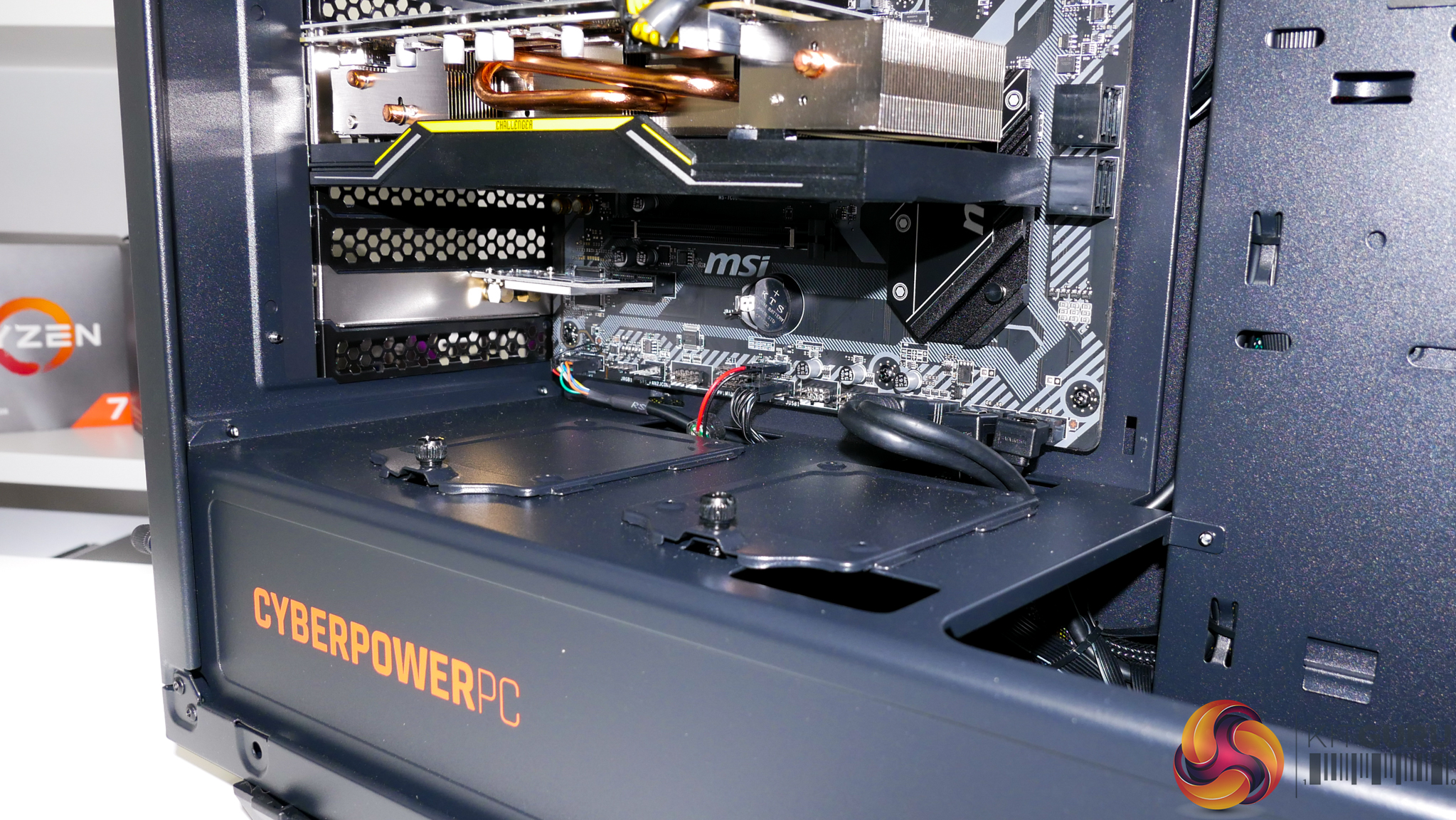 MSI’s B450 Tomahawk Max motherboard forms the system’s backbone. With its solid VRM design, oversized heatsinks, and strong build quality, this motherboard is clearly a superb choice and is still considered one of the best B450 options available. Cyberpower also applies the latest BIOS on this motherboard that brings the most recent AGESA version with it.