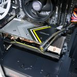 An ADATA SX8200 Pro NVMe PCIe 3.0 x4 SSD at 256GB capacity is used as the system’s main drive. This is a superb choice of SSD for the main system drive as it is a strong budget option with well-balanced read and write speeds. The thin metal heatsink strip also aids cooling.