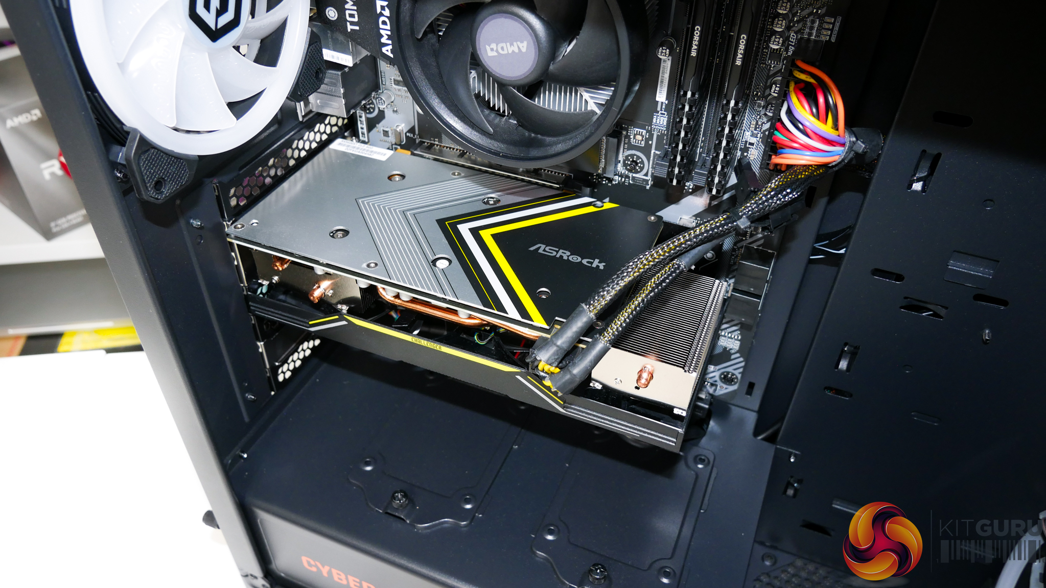 ASRock’s 6GB RX 5600 XT Challenger D graphics card is used for pixel-pushing power. This version of the 7nm GPU features a dual-fan, 2.5-slot open-air cooler that vents into the chassis. A solid metal backplate adds a premium touch to this budget graphics card.