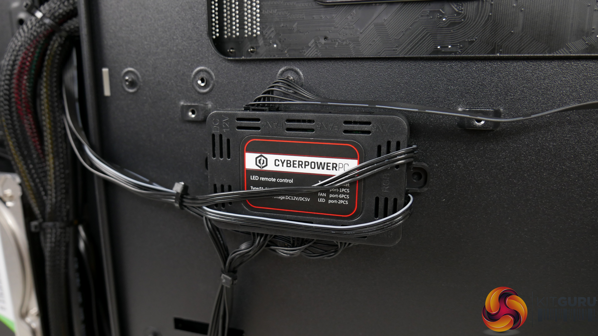 The fans are controlled by Cyberpower’s RGB fan control hub. This is good from an RGB perspective, but it also means that there is no motherboard-driven fan speed control, and that is a big disappointment.