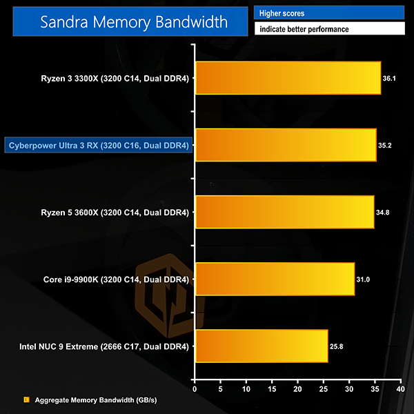 Memory bandwidth is reasonable thanks to the Ryzen 3 CPU, but RAM timings are clearly slack and this affects latency performance, so we will have to see how gaming is influenced. The 3200MHz memory modules used allow for a 1600MHz Infinity Fabric speed.
