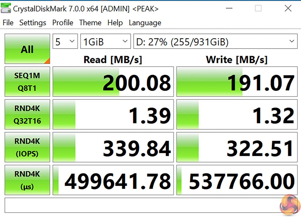 The 1TB Seagate HDD also put in solid numbers with sequential transfer rates around the 200MBps level