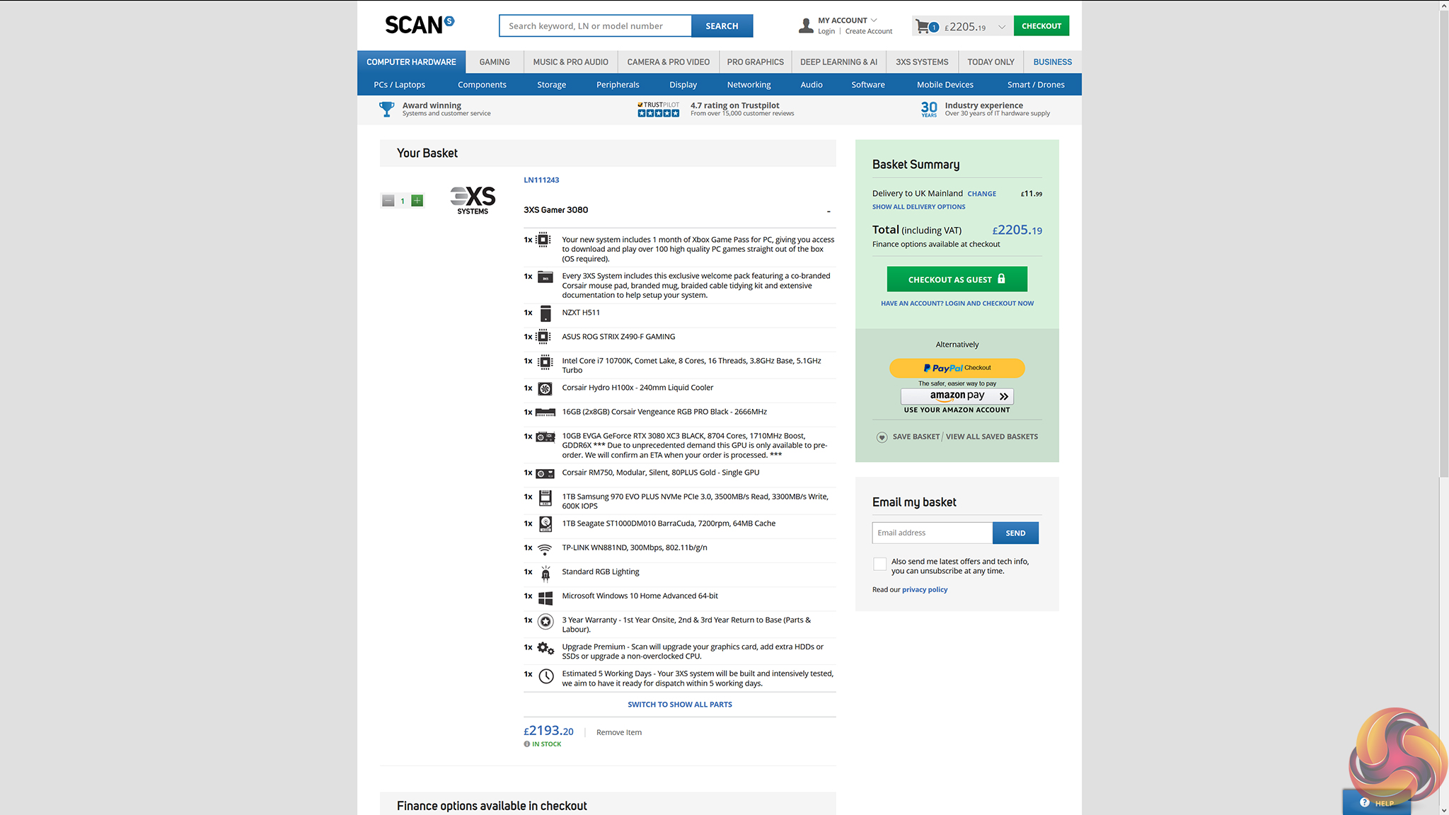 A comparable, RTX 3080-powered build from Scan was more expensive by around £200 when we checked week commencing 13th October.