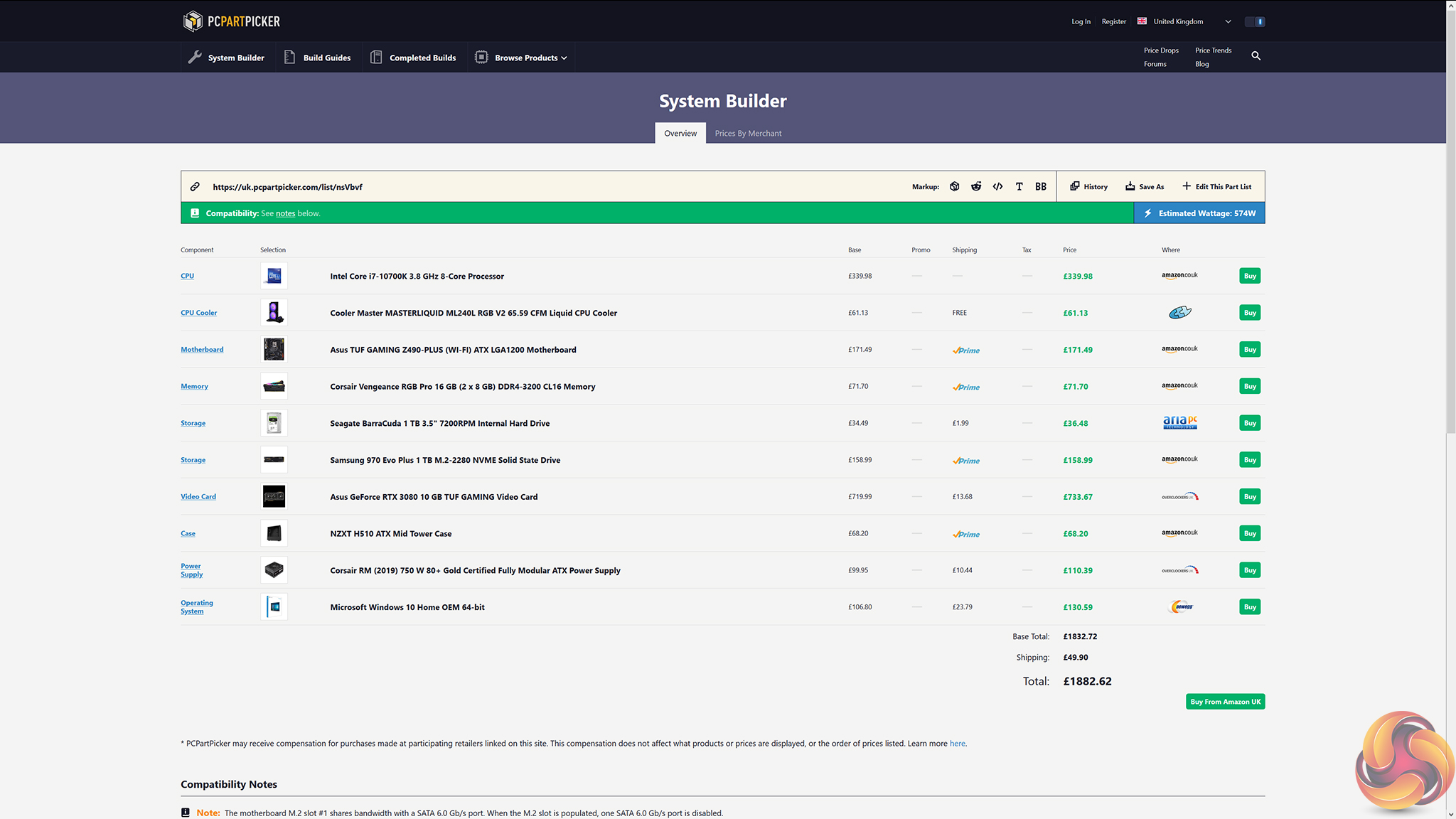 Even if we cut-down to a cheaper motherboard, cheaper AIO cooler, and removed the quality Corsair LL120 fans, we are only a little cheaper than the PCSpecialist system but obviously do not have the luxury of the system being built for us with warranty.