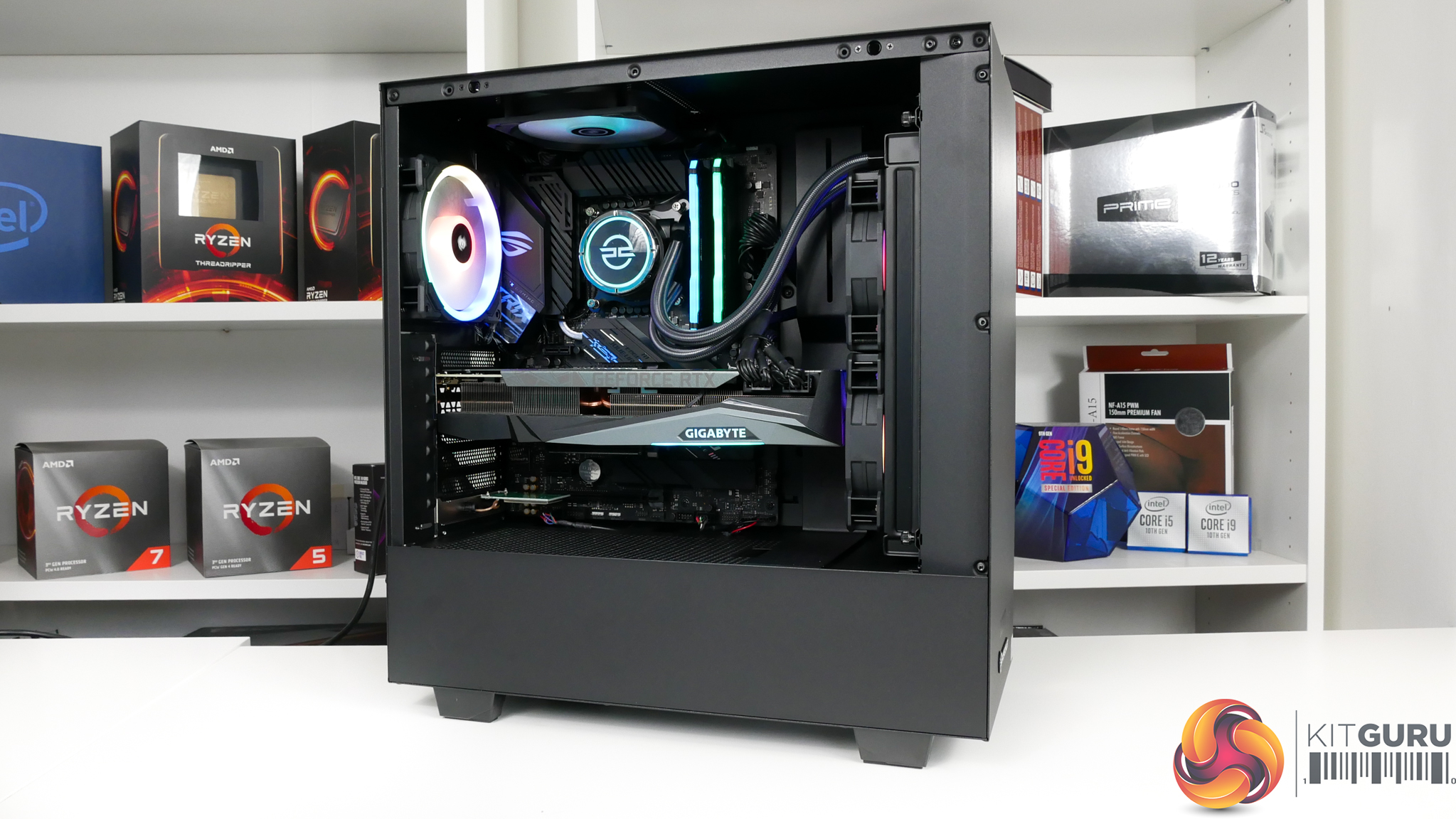 As such, you get 16GB of Corsair Vengeance RGB Pro DDR4, an ASUS Z490-F Gaming motherboard, a 1TB Samsung NVMe SSD, and another 1TB of HDD storage. Cooling the processor is a 240mm AIO, power comes from a 750W Corsair PSU, and housing everything is the cost-effective NZXT H511 chassis – which is a system integrator version of the popular H510.