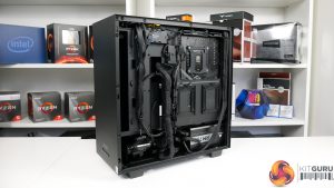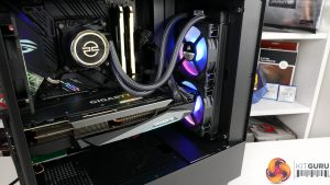 Realistically, though, this is the only mounting orientation that is possible in the NZXT H511 chassis with the RTX 3080 installed. This again references my earlier point of a higher end chassis being more fitting for a build of this calibre. Something a little more premium and with more cooling flexibility, such as the ability to take a roof-mounted 240mm AIO, would have been a better option.
