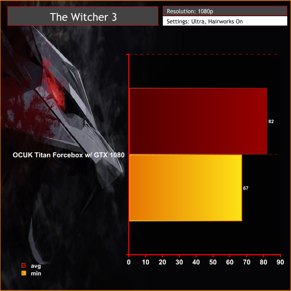 At 1080p, the Titan Forcebox system managed to average just over 80 frames per second. The minimum frame rate also stayed well above 60 at all times, resulting in a perfectly smooth experience.