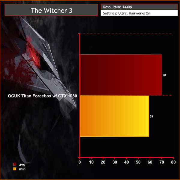 Stepping things up to 1440p and the GTX 1080 still holds strong, averaging 70 frames per second and not really dipping below the 60 frames per second sweet spot.