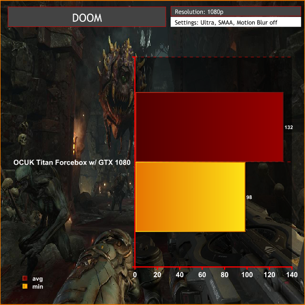 DOOM is an excellent title graphically and clearly, the GTX 1080 has no issues driving it at high frame rates consistently at 1080p.