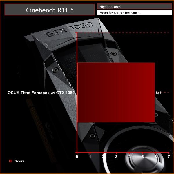 Cinebench primarily puts stress on the CPU. As you can see, the Intel Core i5 6400 isn't setting any performance records but given that this is a gaming machine, rather than a workstation, that shouldn't matter too much. The Core i5 should still be plenty for every day tasks and gaming.