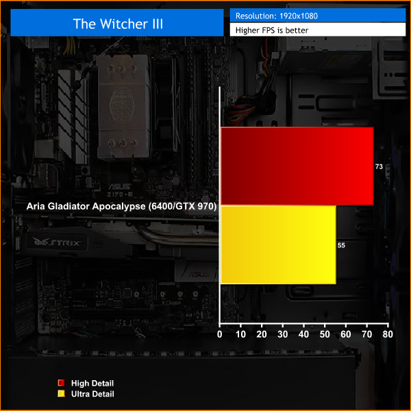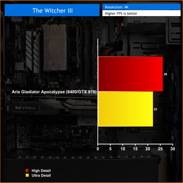 In games, the GeForce GTX 970 delivers excellent performance, which explains why it’s currently one of the most popular graphics cards around. In the Gladiator Apocalypse, it enables superb 1080p and good 1440p performance, but it doesn’t cut the mustard at 4K. You could drop the image quality settings at 4k to help improve frame rates but it seems counter productive.