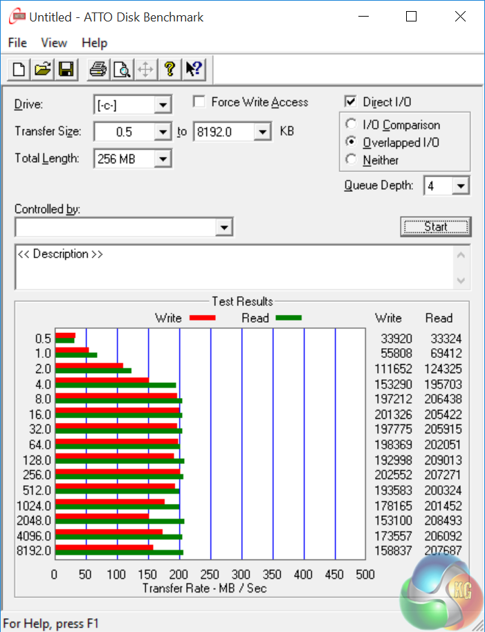 Roughly 175MB/sec read and 161MB/sec write.