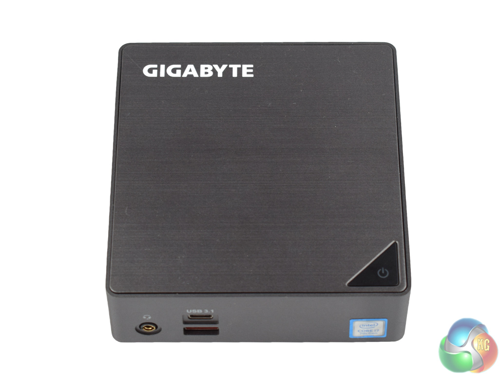 The power button sits in the bottom-right corner on the top of the fascia, while a small Gigabyte logo features in the top left corner.