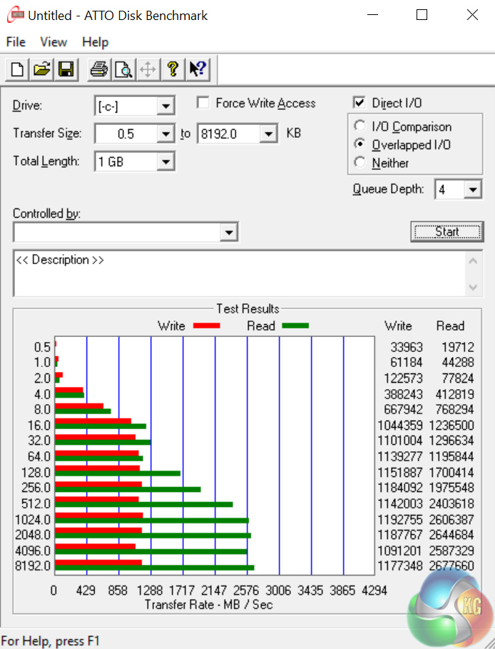 To test this, we benchmarked our PCIe, NVMe Toshiba OCZ RD400 using CrystalDiskMark and ATTO Disk Benchmark.