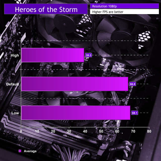 While the other games benchmarked above are a little older and of the AAA caliber, Heroes of the Storm is more contemporary and geared towards a more mainstream audience, making it a fitting test for a machine like the Fusion Scythe 2. This test is a little less synthetic than the others, since it does not have a built in benchmark.