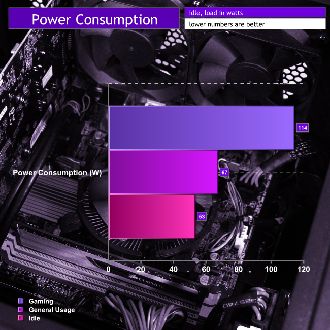 To make sure that the Chillblast Fusion Scythe 2 is not getting too toasty with its stock cooling solutions, we took temperature readings of its main components during idling and high-load scenarios. We also measured power draw during those same instances to see how much you can expect to spend running this system.