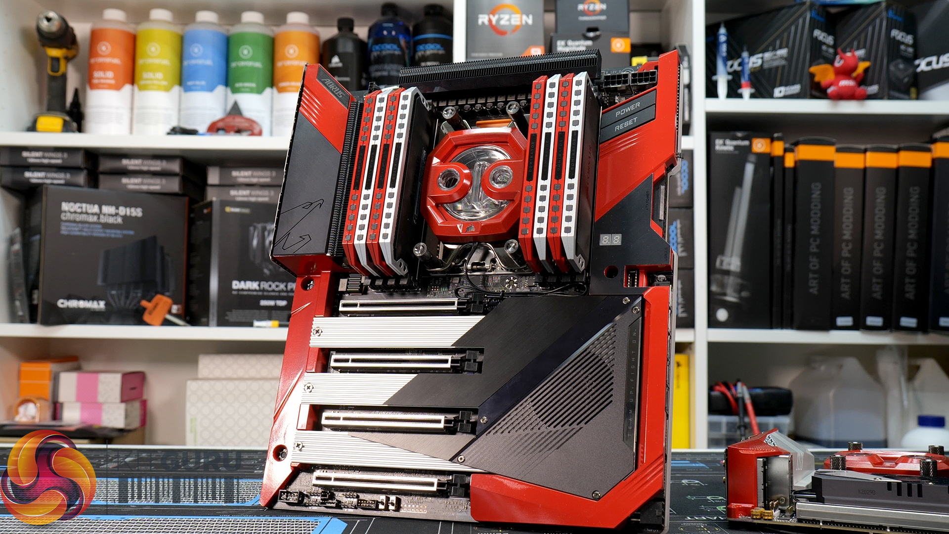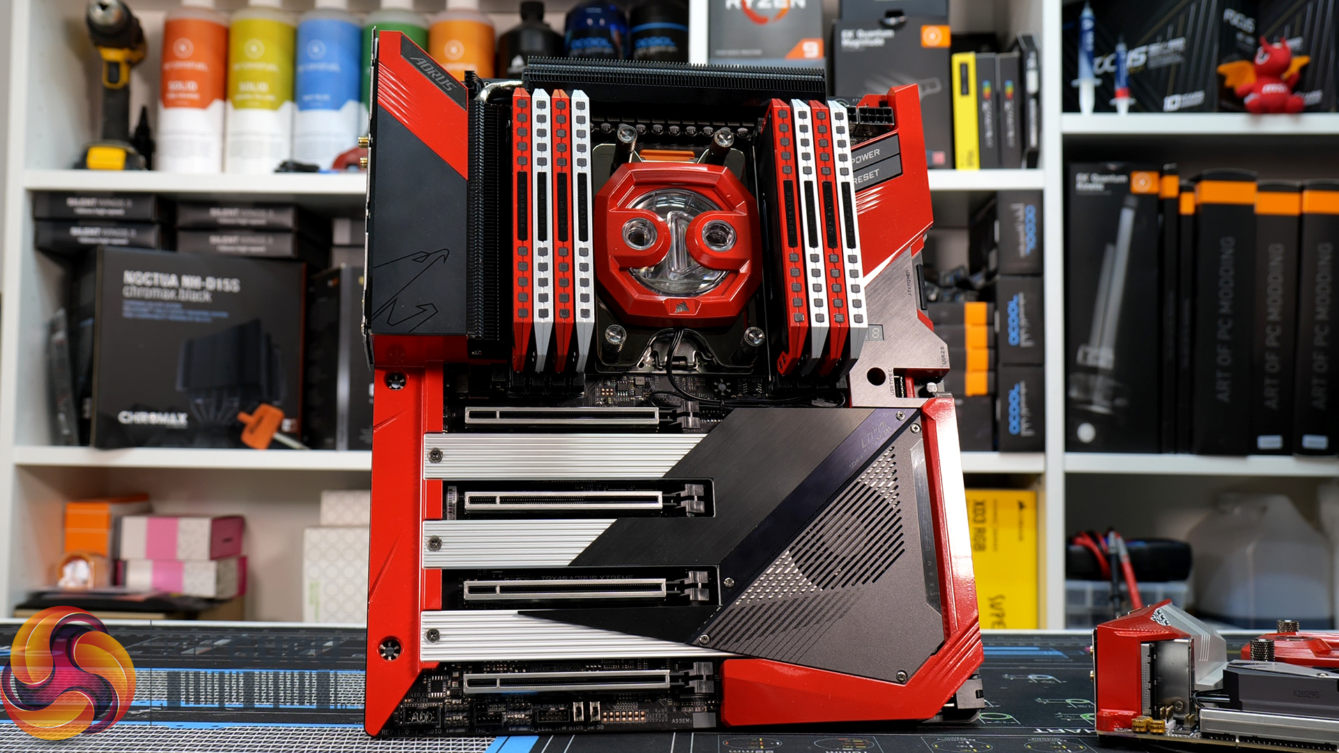 As well as this, there are plenty more mods in part three. I disassemble all the small heatsinks, shrouds, covers and heat spreaders from the system’s TRX40 and X570 motherboards and RAM, take apart the CPU and GPU water blocks and treat them all to custom paint jobs so that they fit in nicely with the red, black and silver theme of the AMD Behemoth.