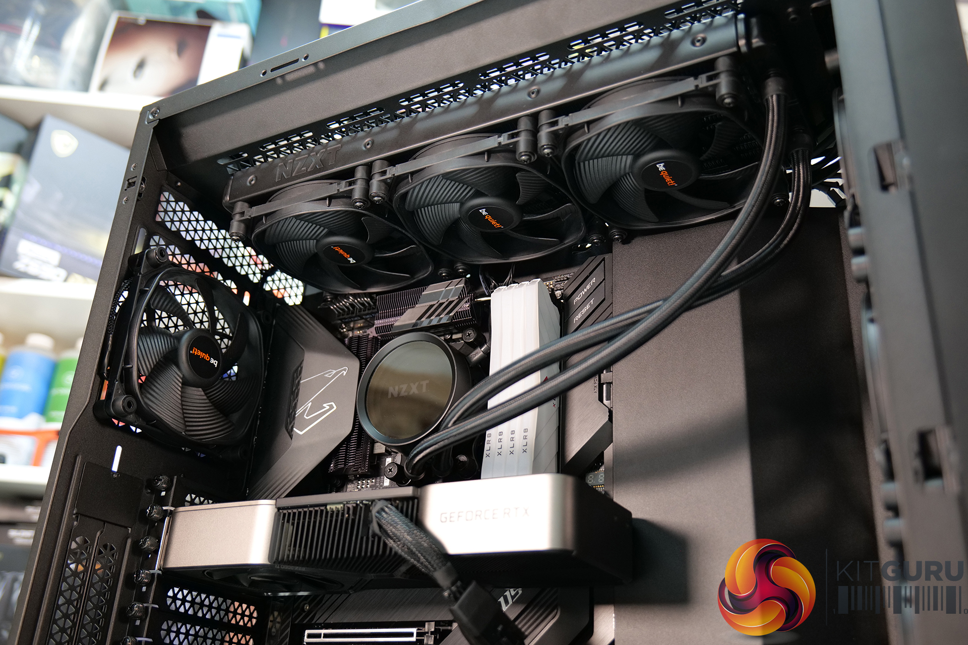 Since this is a workstation/editing rig, RGB lighting is kept to a minimum. In fact, the last few builds I have created all had a minimal RGB theme and I quite like it. I wanted to keep the system as cool as possible but quiet at the same time which I why I used a 360mm Asetek based AIO (NZXT Kraken X73) but changed all the fans in the system, including the AIO fans to be quiet! Silent Wings 3, which are a good compromise between airflow and noise.