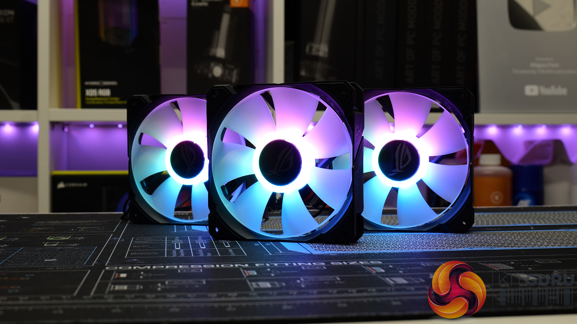 - ASUS ROG ARGB Fans, PWM 300- 2200 RPM, high static pressure, 36.45 dBA.