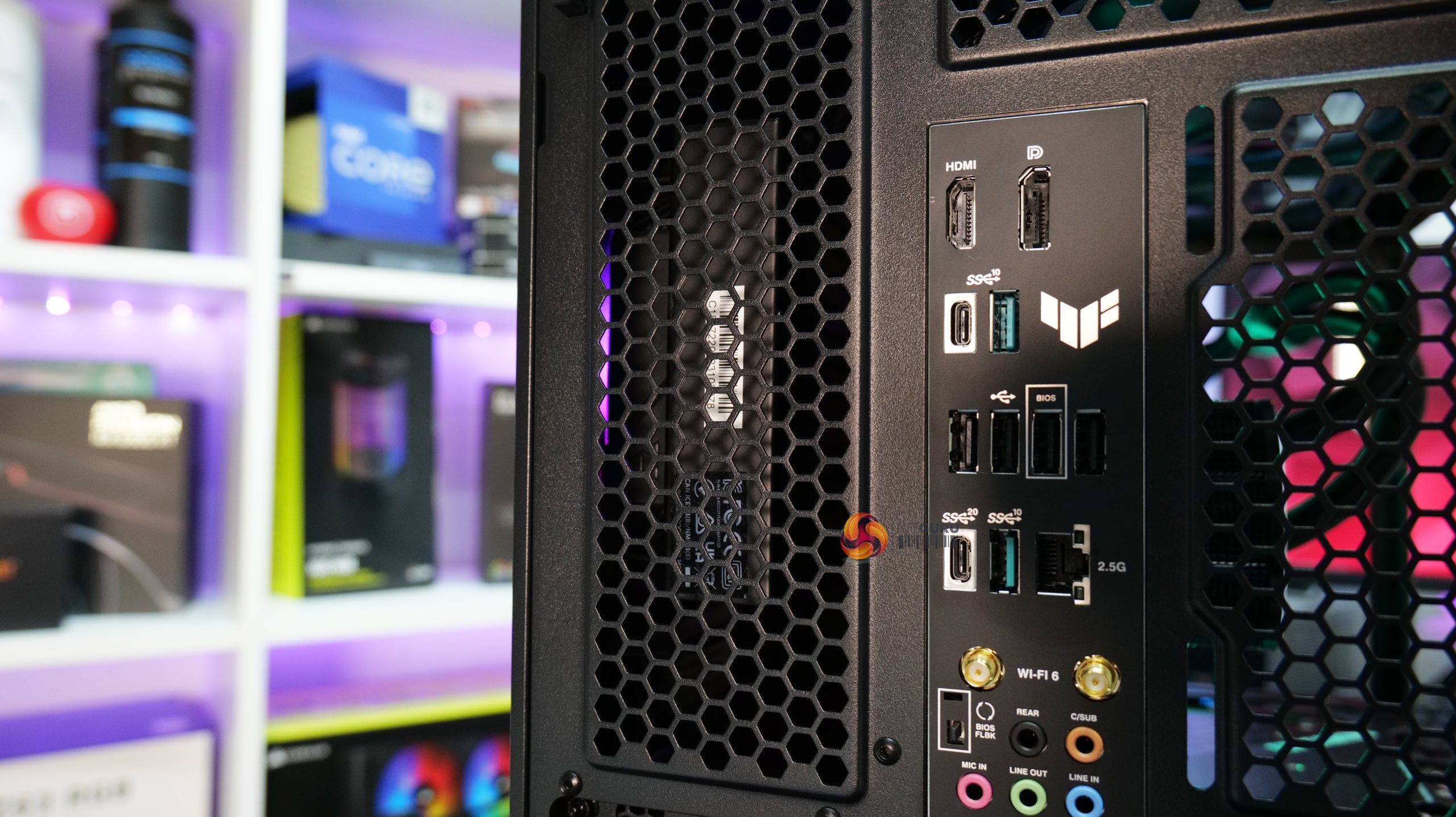 - Rear Panel I/O Ports – 3 x USB 3.2 Gen 2 ports (2 x Type-A + 1 x USB Type-C), 1 x USB 3.2 Gen 2×2 Type-C port ,4 x USB 2.0 Type-A ports, 1 x DisplayPort , 1 x HDMI port ,1 x Wi-Fi Module, 1 x Realtek 2.5Gb Ethernet port ,5 x Audio jacks ,1 x BIOS FlashBack button