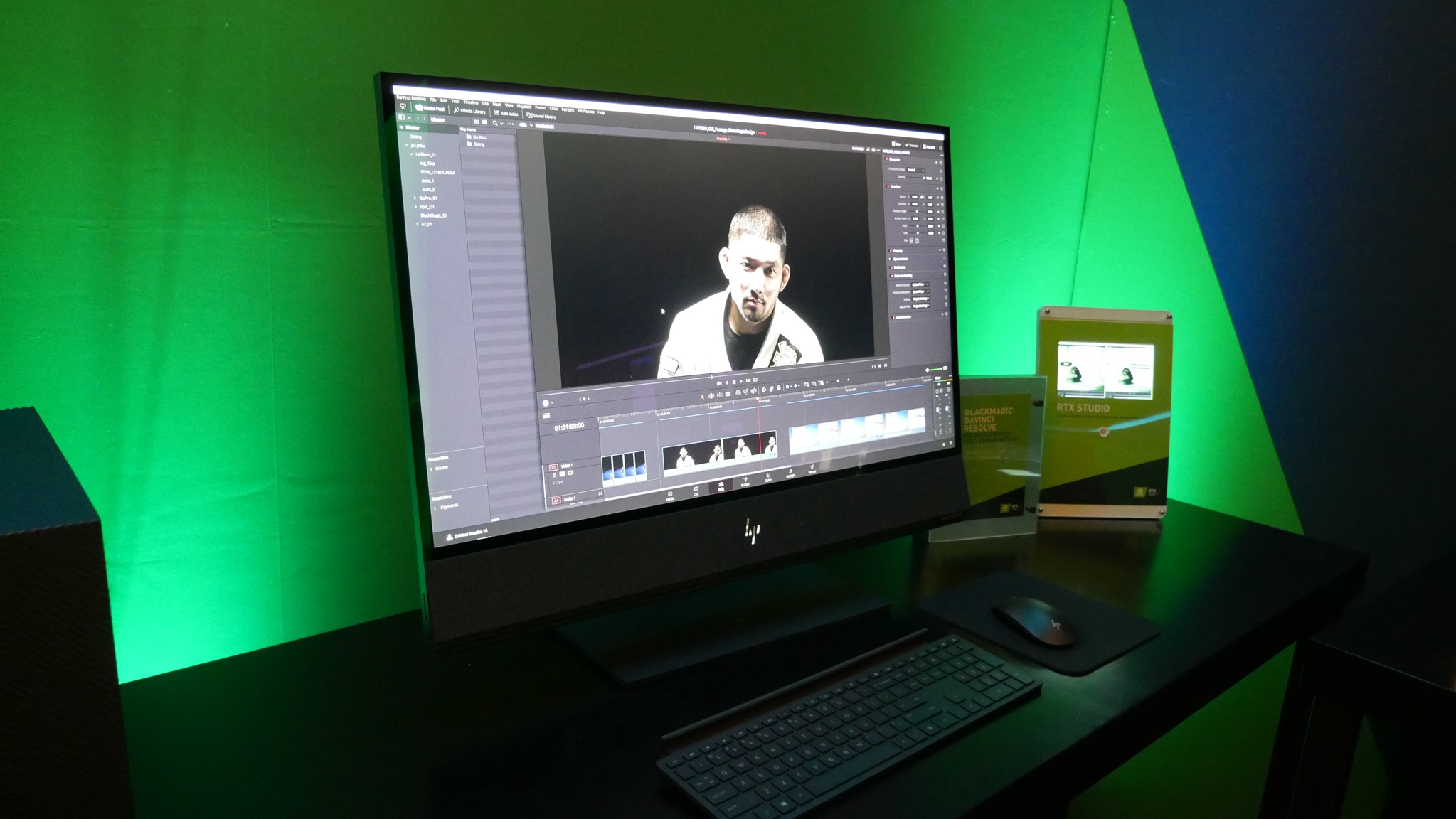 Moving on to a HP all-in-one system equipped with an Nvidia RTX GPU running Nvidia RTX Studio. The device had a demo running of DaVinci Resolve with 8K Red footage utilising hardware inside the Nvidia GPU technology to introduce new frames to the footage which smoothed out playback, Luke was very impressed by this and suggested it significantly improves playback. Using the Nvidia GPU for this process significantly reduces time to complete compared with an Intel iGPU.