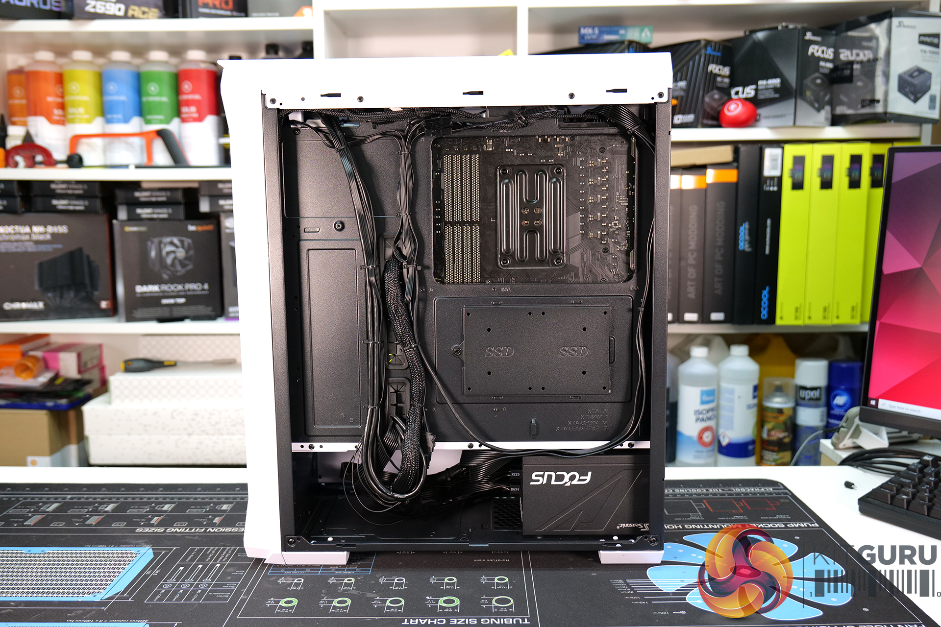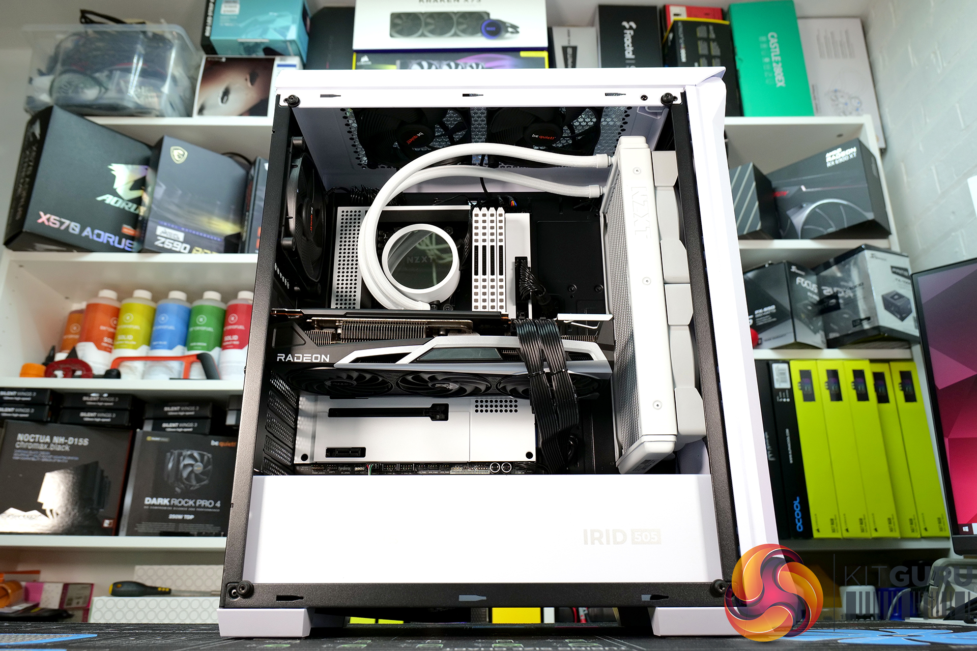 Since we chose to use the standard non-ARGB version of the IRID 505 for the build, we selected hardware to match the two-tone black and white theme. Aesthetically the build turned out looking great. However, the case ended up being one the most irritating to work with if you want to install a 280mm AIO cooler. It seems to us that it is impossible to fit a 280mm Asetek AIO radiator in the roof of the case with the tubes either at the front or rear as it fouls on the front I/O mounts and EPS cables.