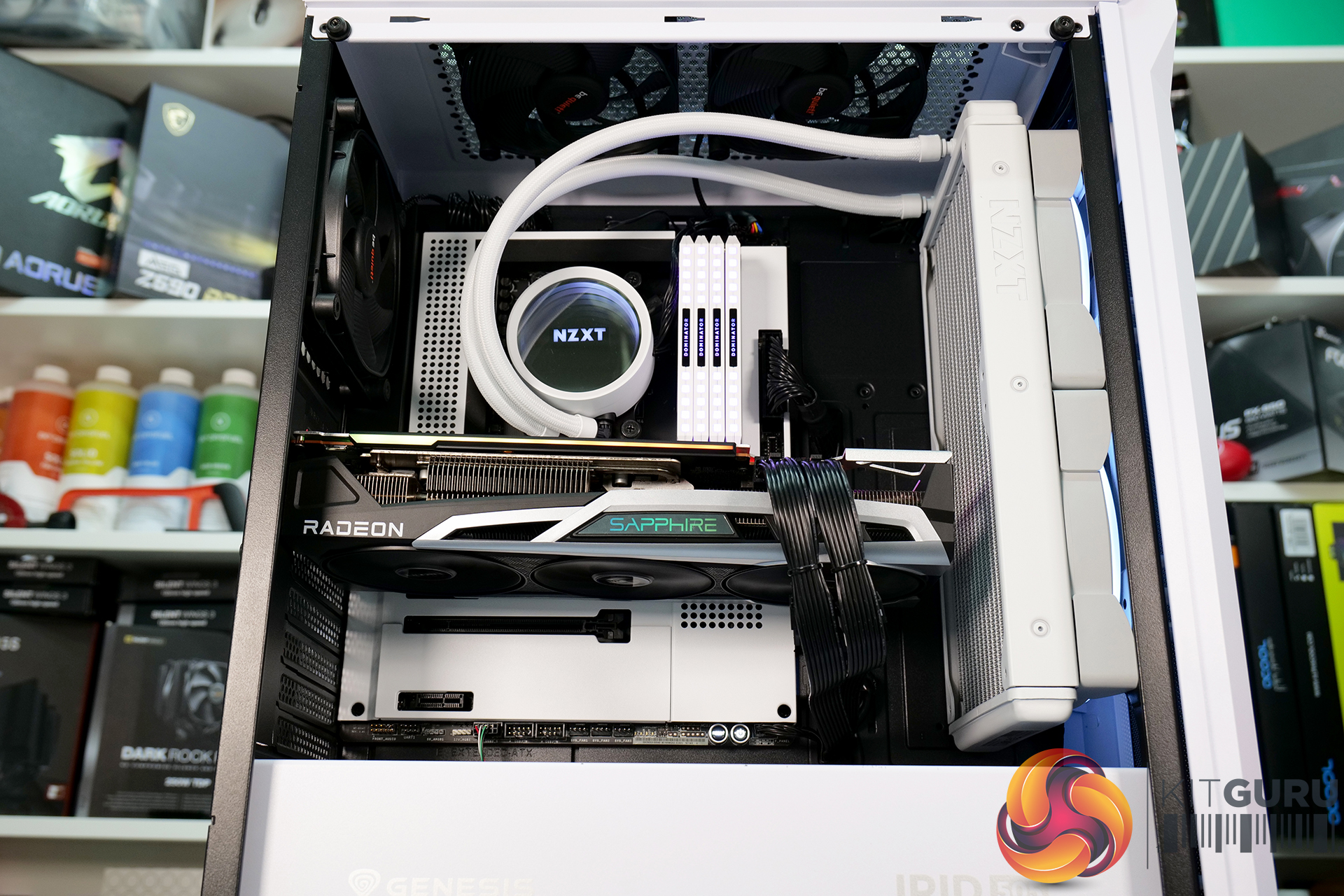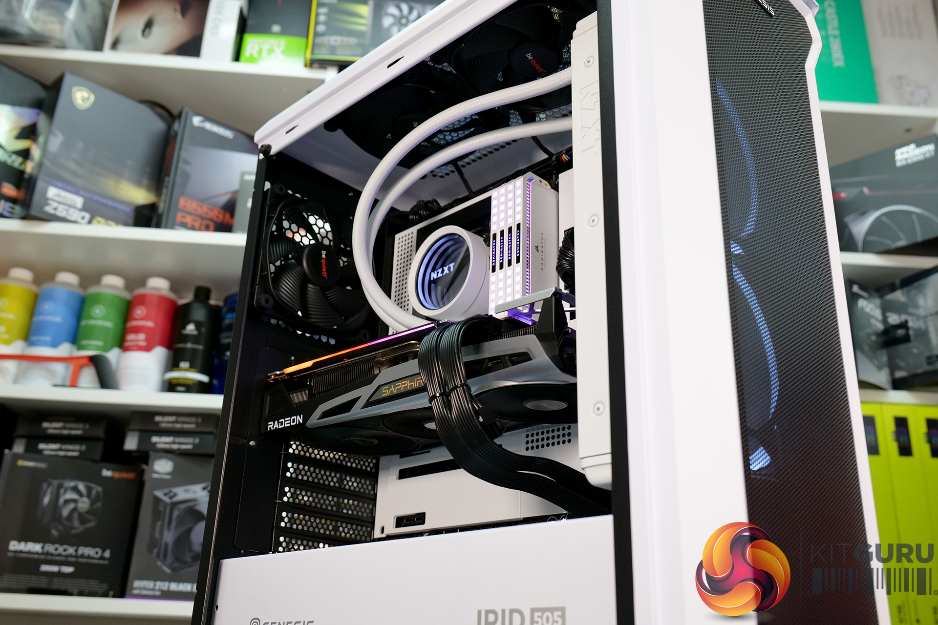 So, with this in mind, we think it would be best to stick to 240mm AIO radiators in the IRID 505, or fitting a 360mm AIO in the front should be possible as we found out earlier. Either will be easier than fitting a 280mm AIO for sure. But other than this AIO issue, the build process went well, there is plenty of space around the motherboard to work and long graphics cards such as the Sapphire Radeon RX 6800 Nitro+ that we used fit with a front-mounted AIO installed.