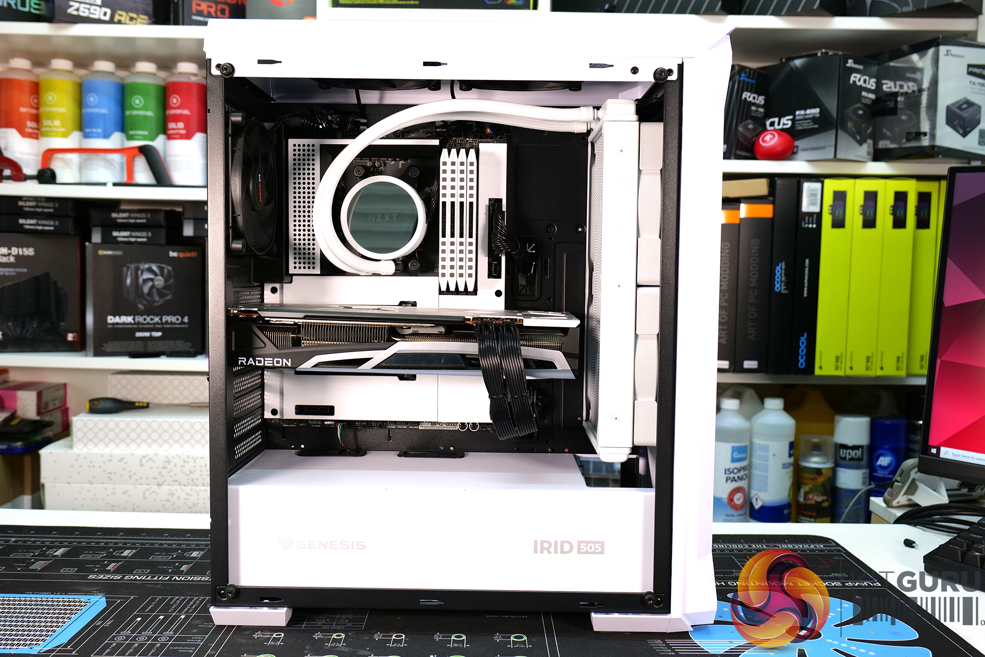 Because these cases technically launched almost two years ago (in black), we figured that you guys will have already seen the reviews of the Genesis IRID 505 chassis series. So instead of an in-depth technical review with a detailed cooling analysis of the IRID 505, we picked our preferred version of the revised cases and set to work on building a system, to see what the IRID 505 is like to use for a build in the real world.
