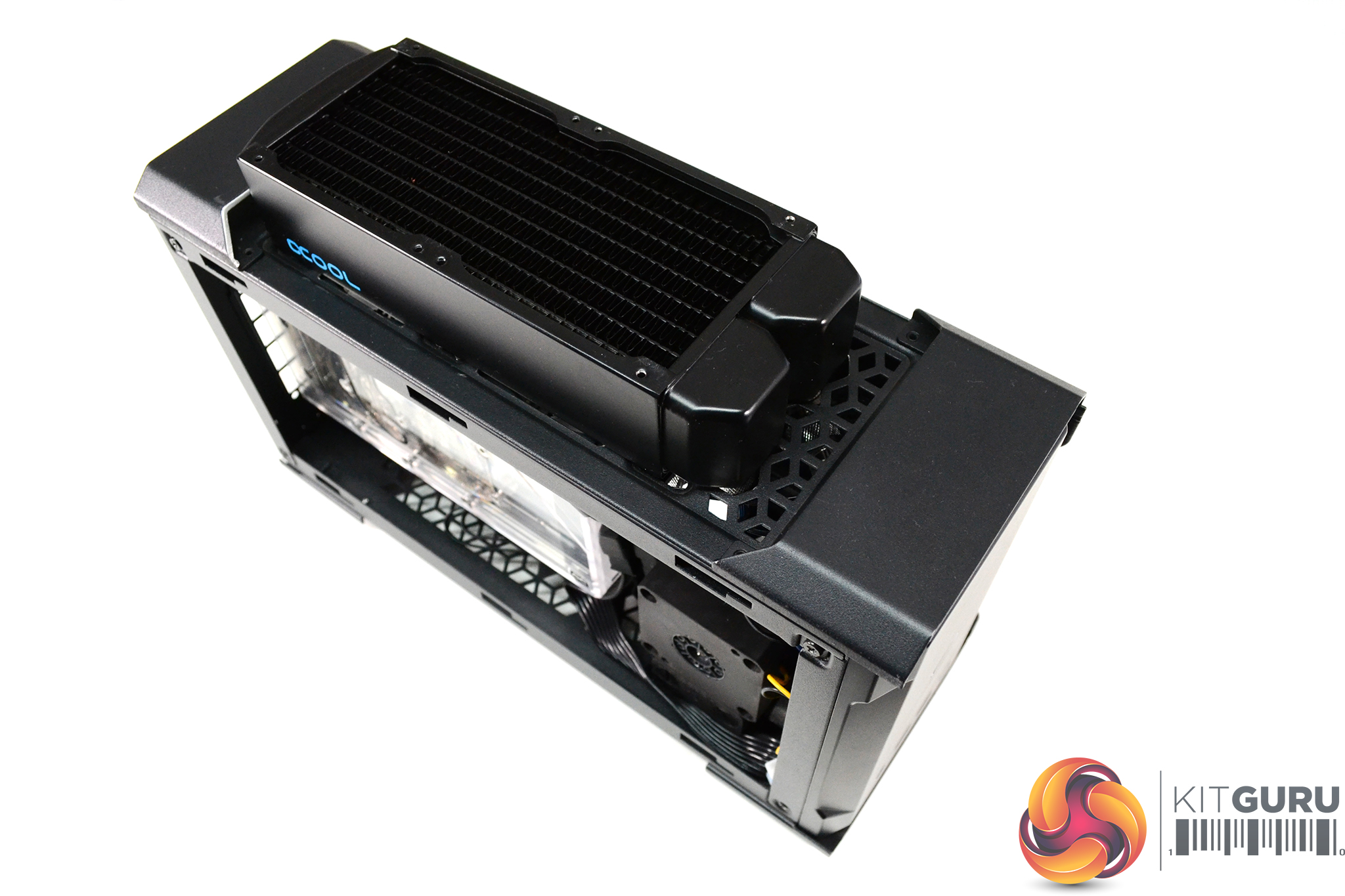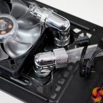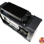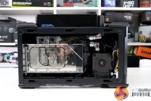 With the radiator installed, the rest of the system is piped up ready for filling, everything seems to fit inside the case well. Surprisingly, it wasn’t as difficult as expected to connect up the tubing, the extra space inside the chassis created by removing the NUC 9 Extreme Compute Element fan shroud, the stock GPU cooler as well as using flexible soft tubing was a real bonus.