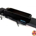 This increase in space inside the chassis will allow us to fit a compact pump/res combo, there isn't enough space for a traditional style pump res that could normally be installed inside an ATX desktop system, but thankfully Alphacool came up trumps again with one of their ES Reservoirs designed for 1U server chassis, which looks ideal to fit in the new space we have created behind the graphics card.