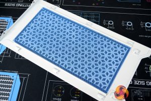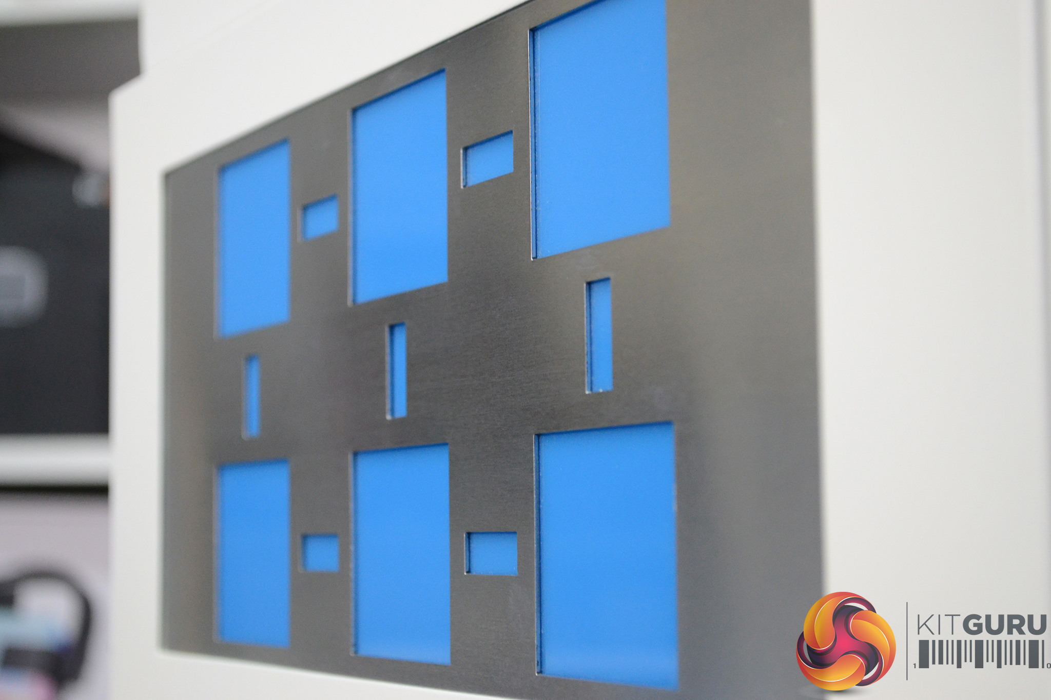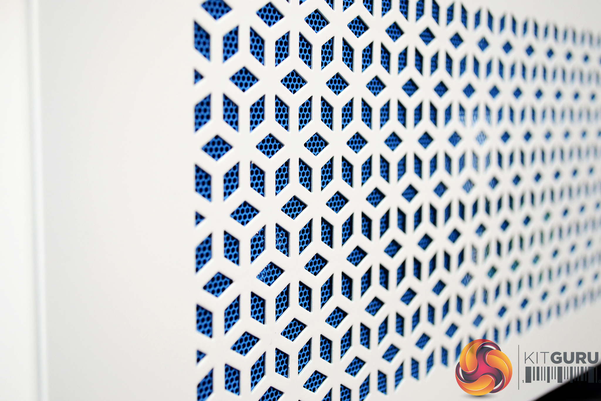 As well as the subtle custom paint job, I modded the case top panel to accept a 240mm radiator for improved heat dissipation along with the addition of a custom laser cut side panel. The Intel Six Pillars logo has been laser cut from aluminium plate and then backed with a sheet of blue acrylic to synchronise with a blue power button and blue mesh on the opposing right-hand side panel.