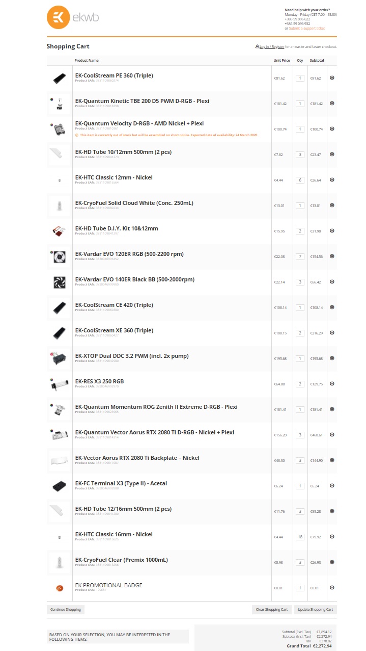 Since this is our ultimate system, a simple AIO or CPU air cooling solution was not going to cut the mustard. We chose to go with an EK Water Blocks custom hard tube cooling loop, however, the budget would only stretch to CPU cooling. Luckily the EVGA RTX 2080 Ti KINGPIN Gaming card has its own water cooling to help keep the temperature under control when overclocking.