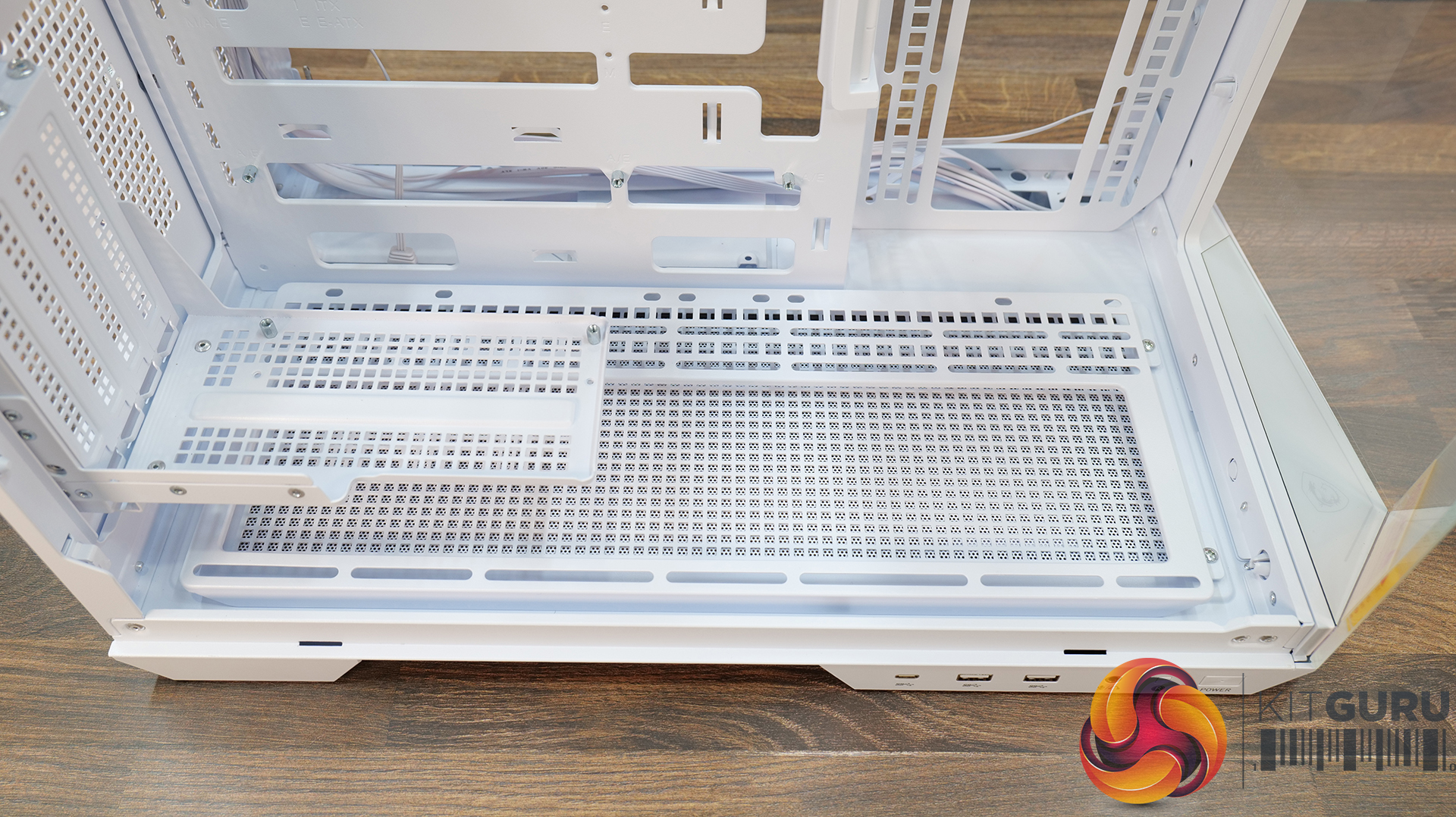- It's equipped with 90mm cable routing space, multi-function storage brackets, removable dust filters and quick-release removable panels for unobstructed installation access.