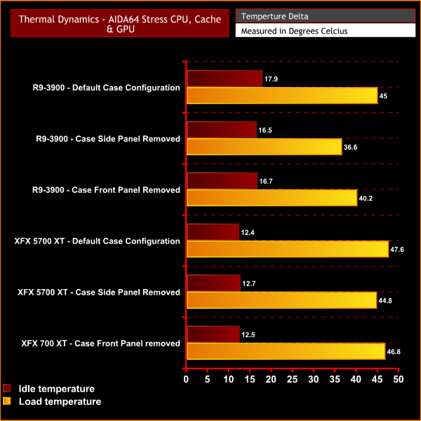 No matter how we set up the configuration of the case, both the CPU and GPU temperature remained pretty consistent, which shows that in its default configuration this is a very good case for airflow and cooling.