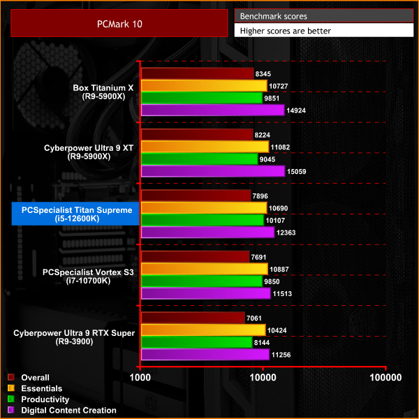 PCMark 10 measures the performance of a system in all areas including general tasks such as video conferencing, web browsing, word processing etc, as well as productivity and content creation. The Titan Supreme excels in all these areas so should be a solid system to work on as well as playing games.