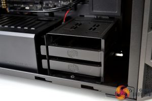 Although there are no traditional 3.5-inch mechanical hard drives included with the Vortex S3 system, at the bottom of the case are two 3.5-inch HDD bays. So, if additional high capacity storage was needed, the option to add 3.5-inch HDDs in the future is possible. Alternatively, this 3.5-inch HDD cage can be removed from the system to create more space for a front-mounted radiator or custom liquid cooling components.