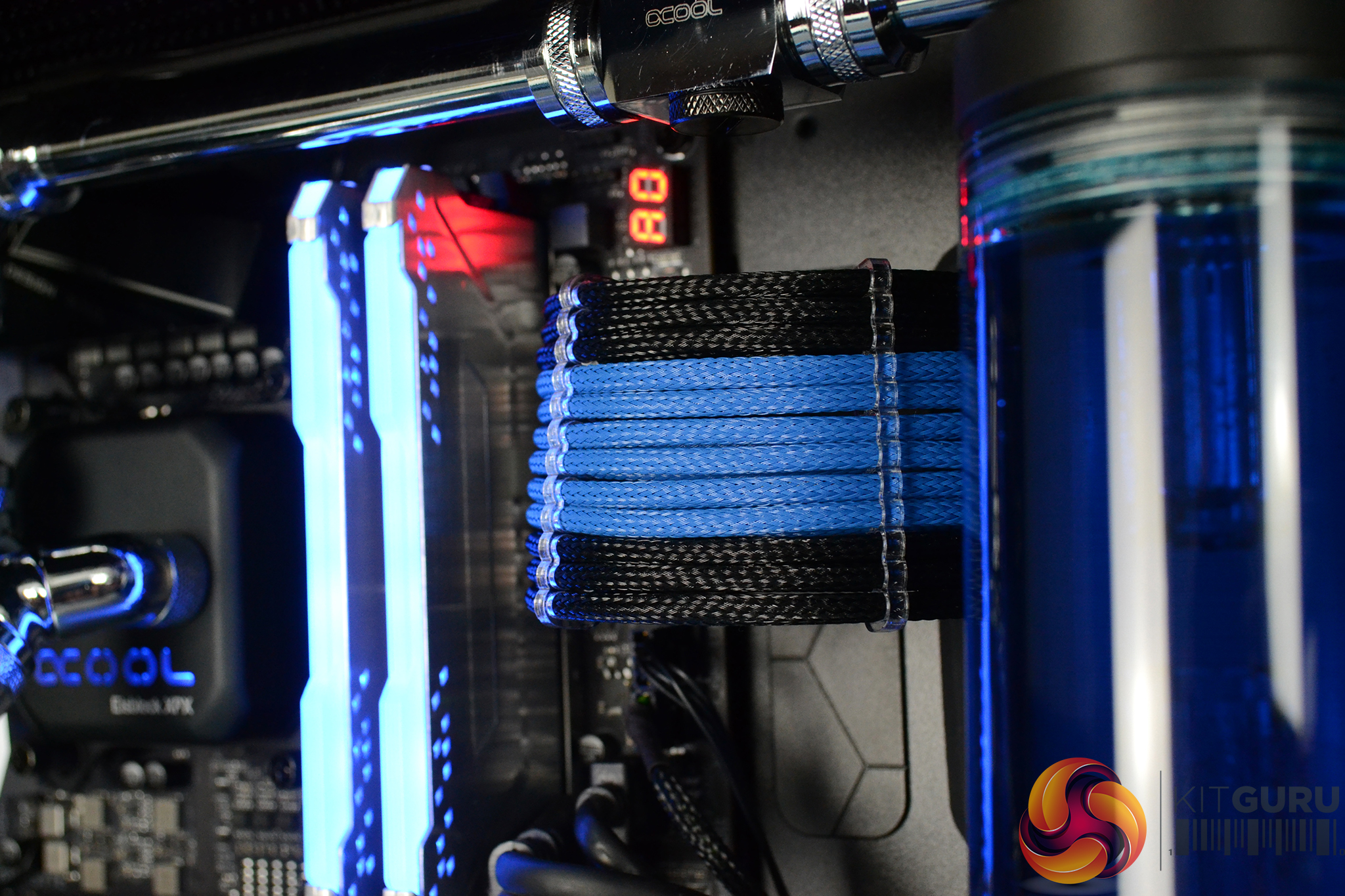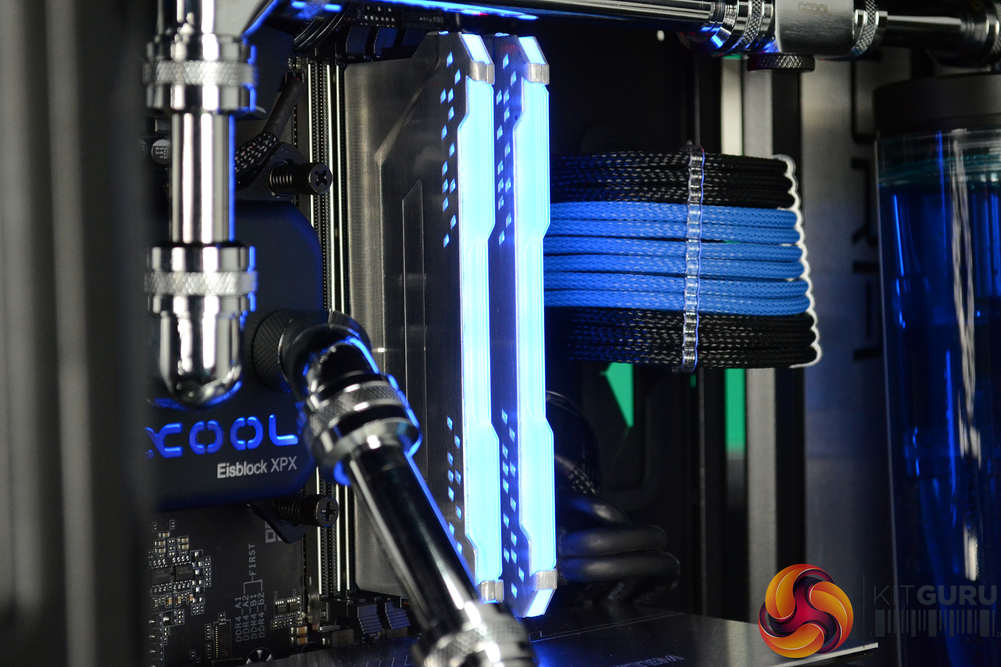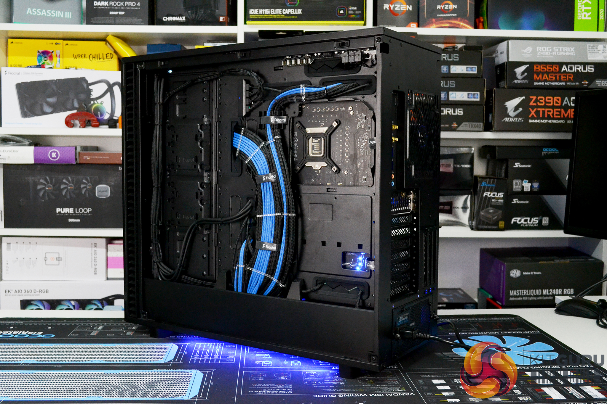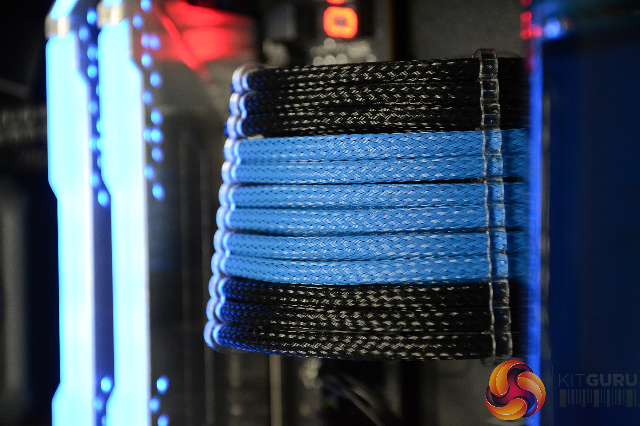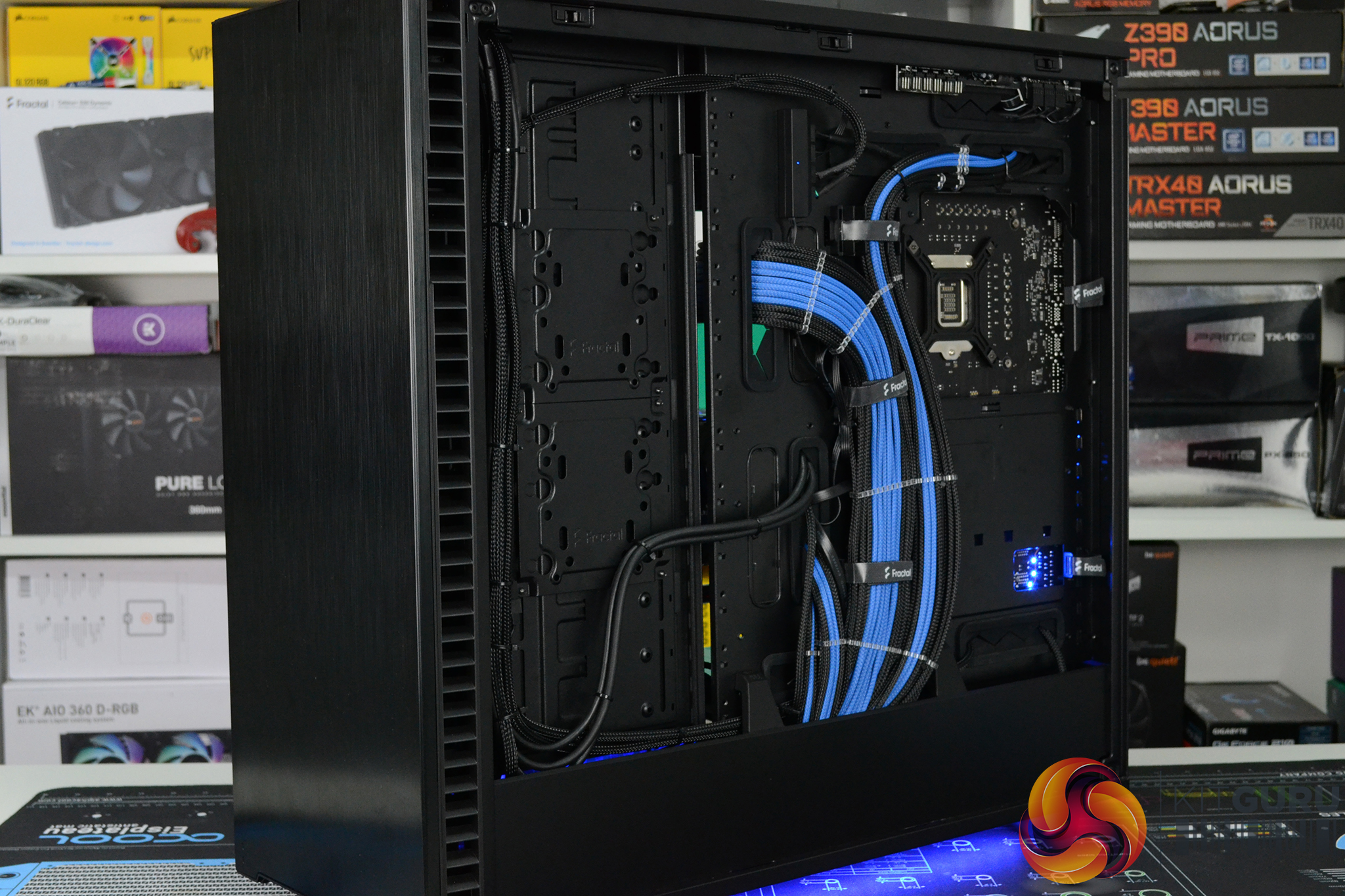 - Custom length, Black/Blue sleeved power supply cables made to exact length for the system and neatly managed behind the right-hand side panel.