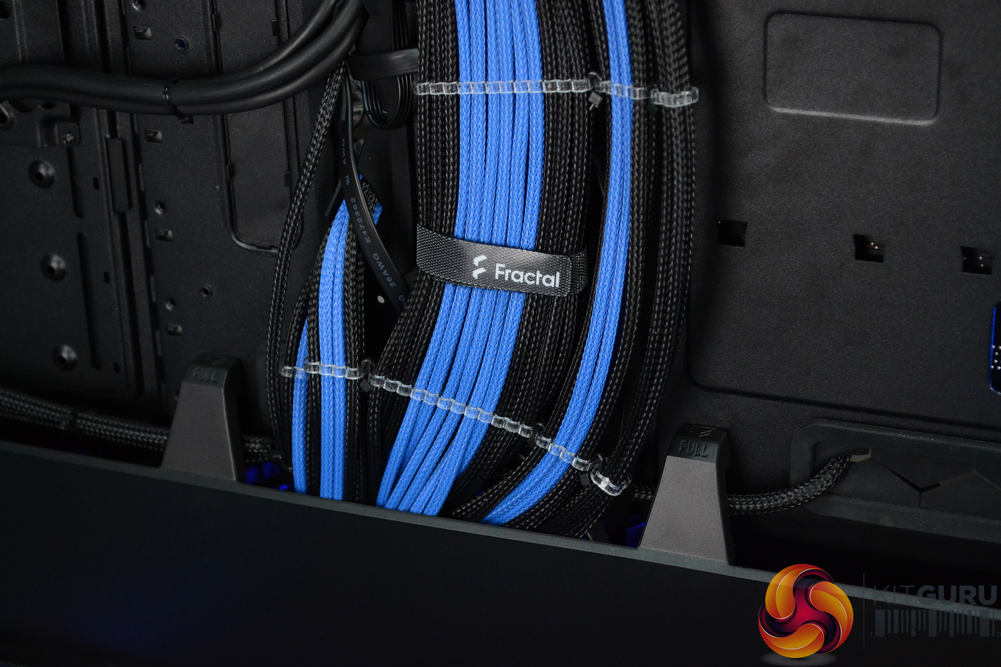 All the custom cables are managed behind the right-hand case side panel, the Define 7 XL is an excellent case for cable management with plenty of cable push through cut-outs and eyelets for strapping cables down. The case also has a large plastic panel that covers cables entering the power supply shroud, so the final cable management in the right-hand side of the system looks great.