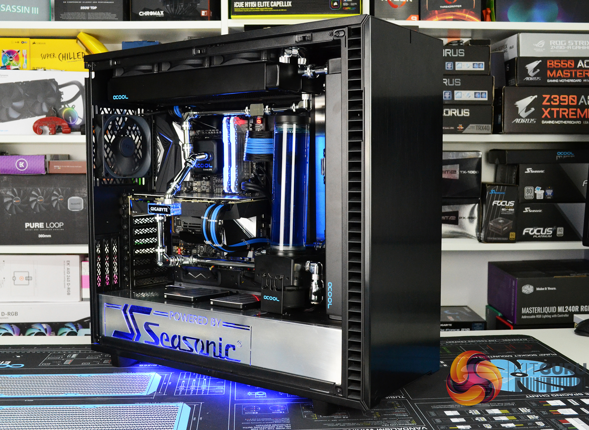 - Custom laser cut Seasonic Aura aluminium panel at the right-hand side of the motherboard tray.