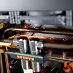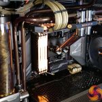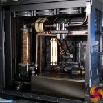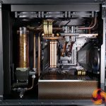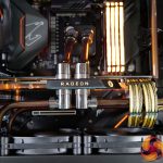 A high specification system such as this requires advanced cooling. An EKWB full custom cooling loop was built to cool both the CPU and GPU, using a full cover EK-Quantum Vector RX 6800/6900 D-RGB block for the graphics card and an EK Magnitude – AM4 Copper + Acetal block for the CPU. Mayhems mixed us a one-off bottle of their end-of-life Aurora Hydra Black Gold coolant for this project; the fluid was only used for a short time, then drained and flushed from the system, but it looked great for the video.