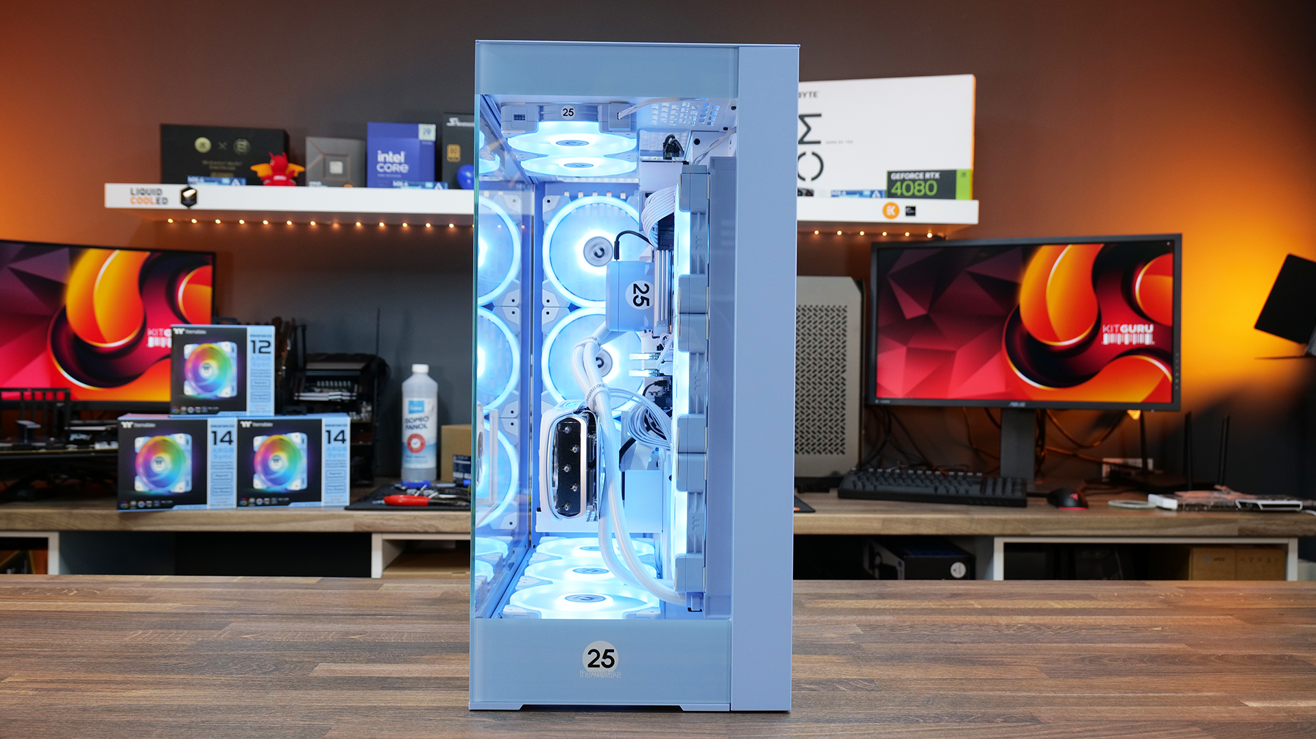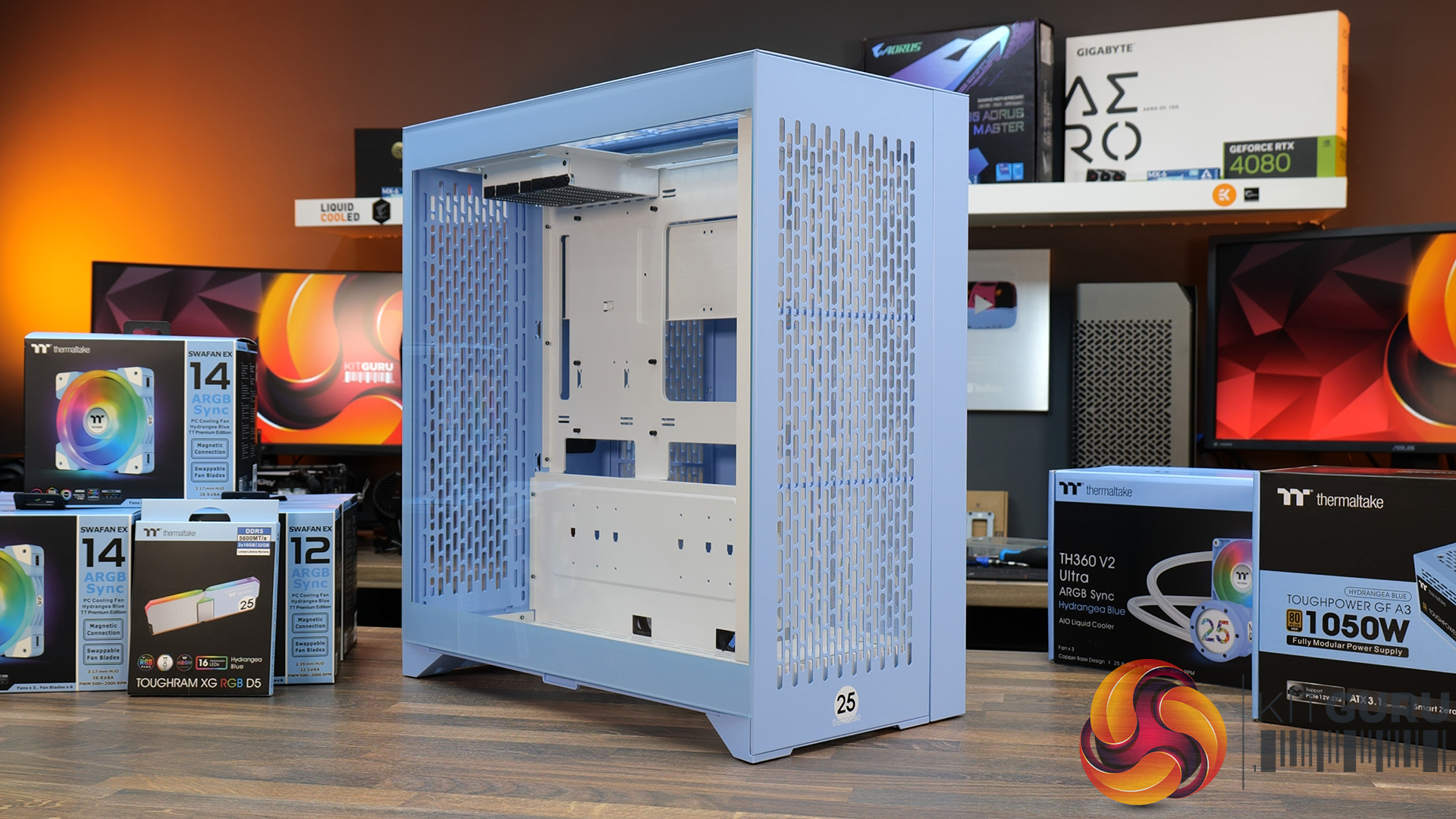 It’s time for another one of our featured builds and this time around the video is sponsored by Thermaltake. The company is celebrating its 25th anniversary with a range of special edition Hydrangea Blue products so we will be putting all this lot together, along with some other components including an RTX 4080 Super from Zotac and an Intel Core i9-14900K CPU. Let's see how this one turns out.