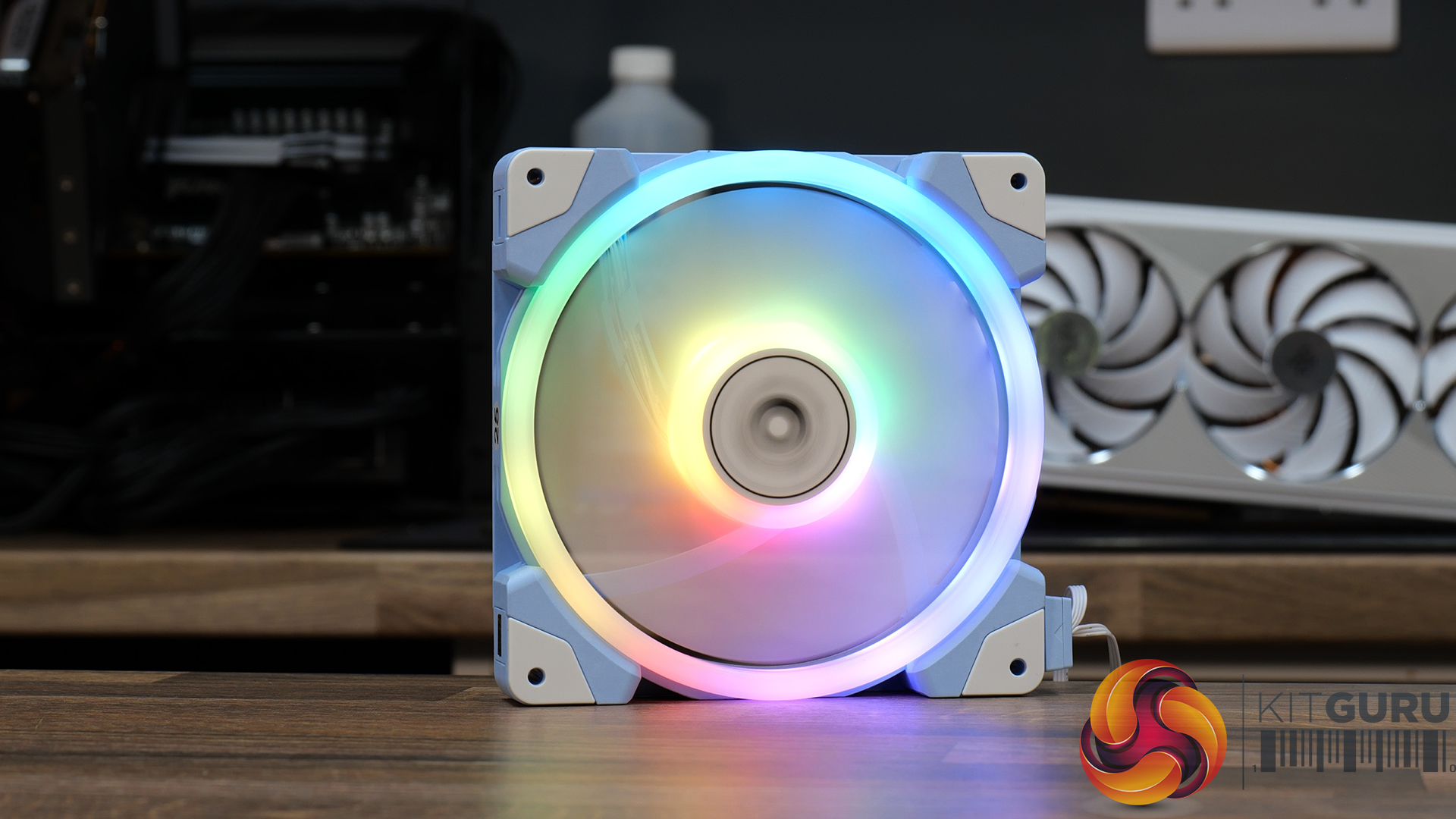 - It includes new CT120 ARGB Hydrangea blue fans with a PWM speed range of 500-2000 RPM, 57.05 CFM max airflow, 2.23mm-H20 max static pressure and low noise output of 25.8 decibels.