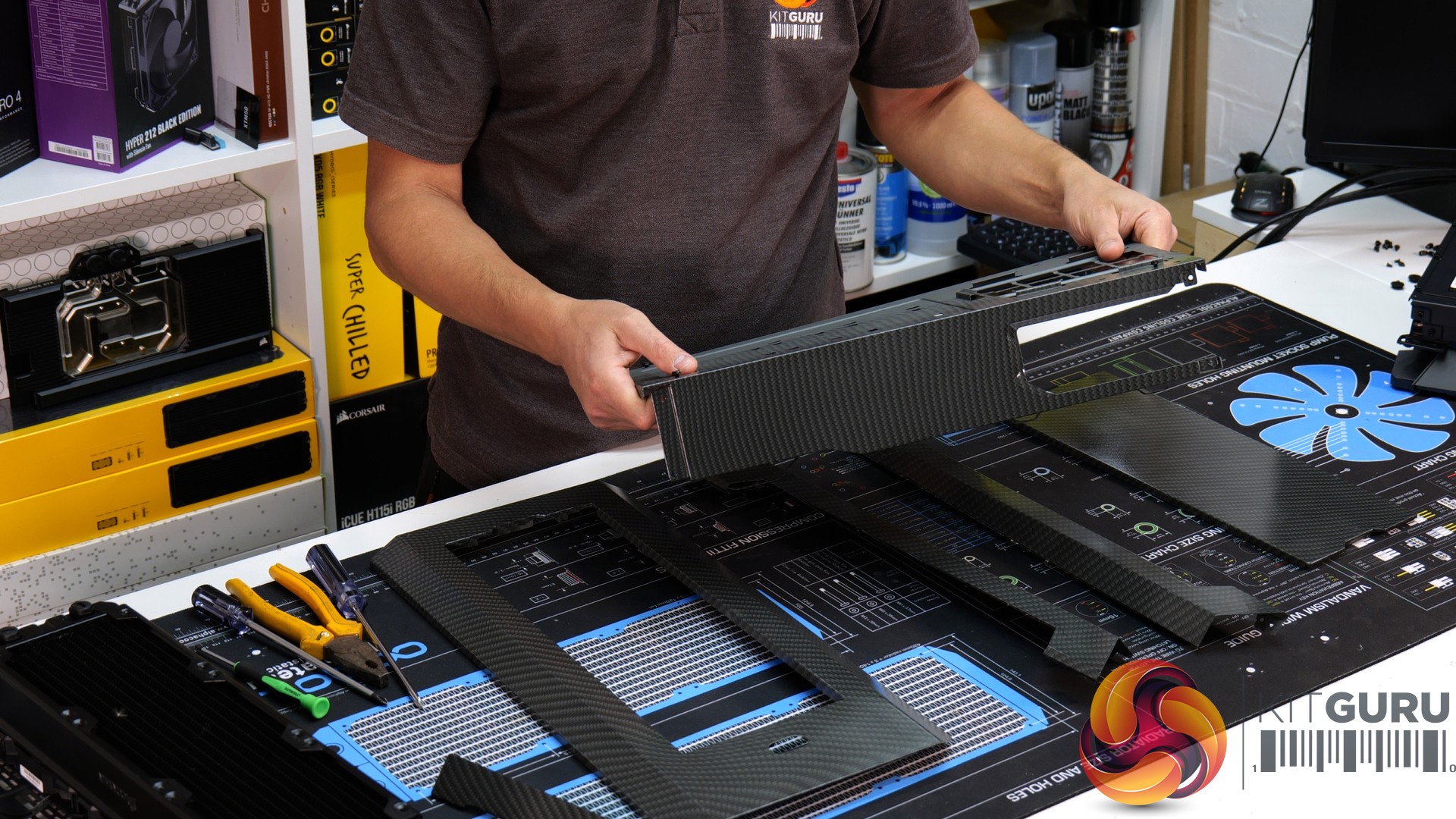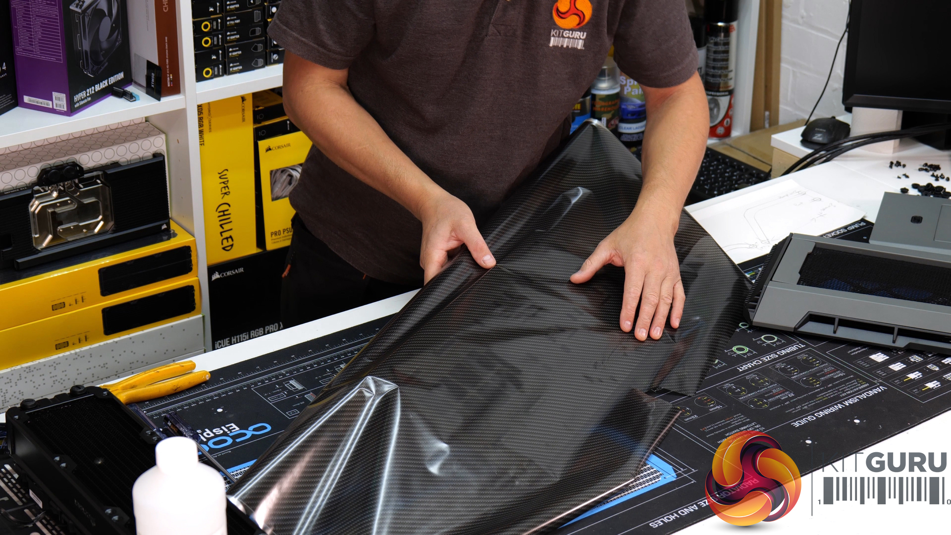 We are a little behind schedule with part two of this build due to me being ill and losing my voice for a week (which is not ideal when making videos)… despite that I managed to get on with some case mods while my voice was out of action. The opening section of WD_Blackout Part two focuses on those case mods as well as the DIY distro plate. The Phanteks P600S chassis was completely dismantled, which allowed me to individually hydro dip a block carbon effect film on most of the outer panels and the power supply shroud.