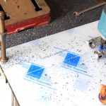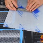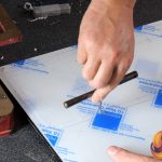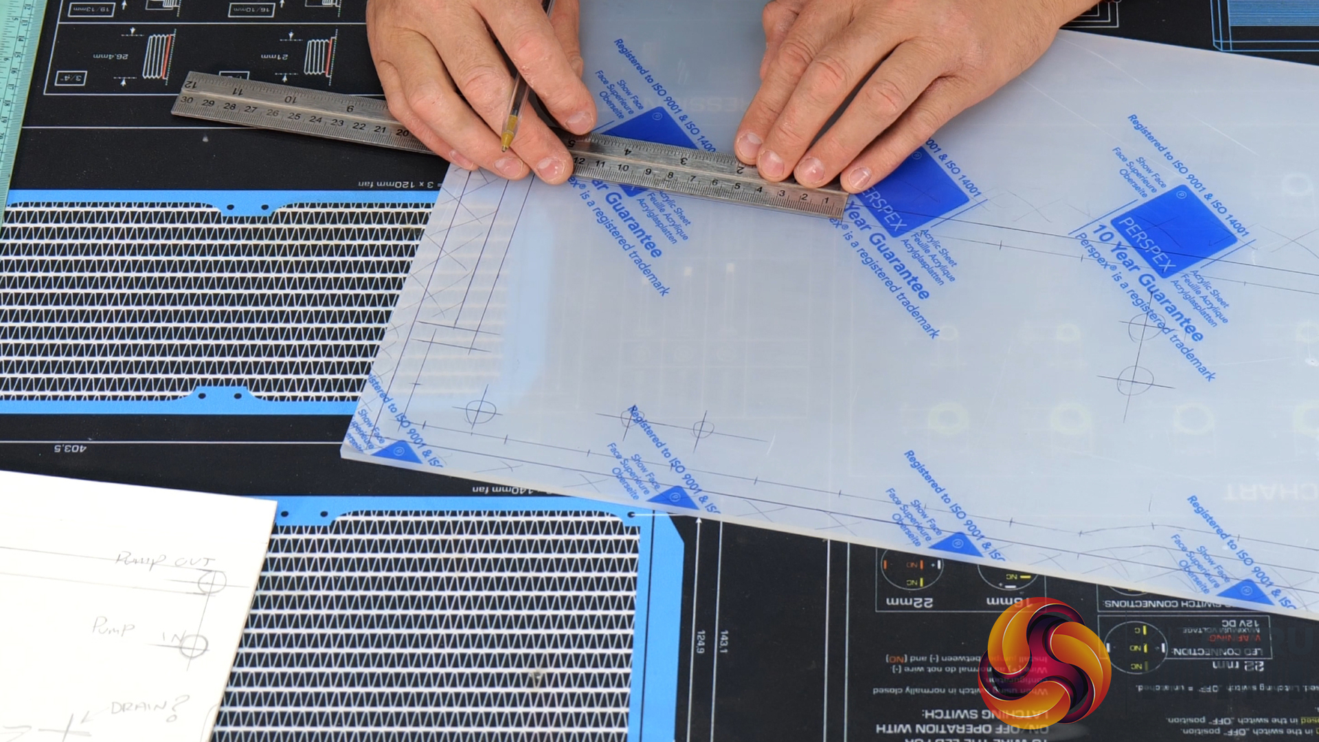 - Transfer the dimensions from the template to the acrylic sheet that will be used for the upper cover. I found that marking the protective film with the dimensions was done best by using a biro.