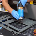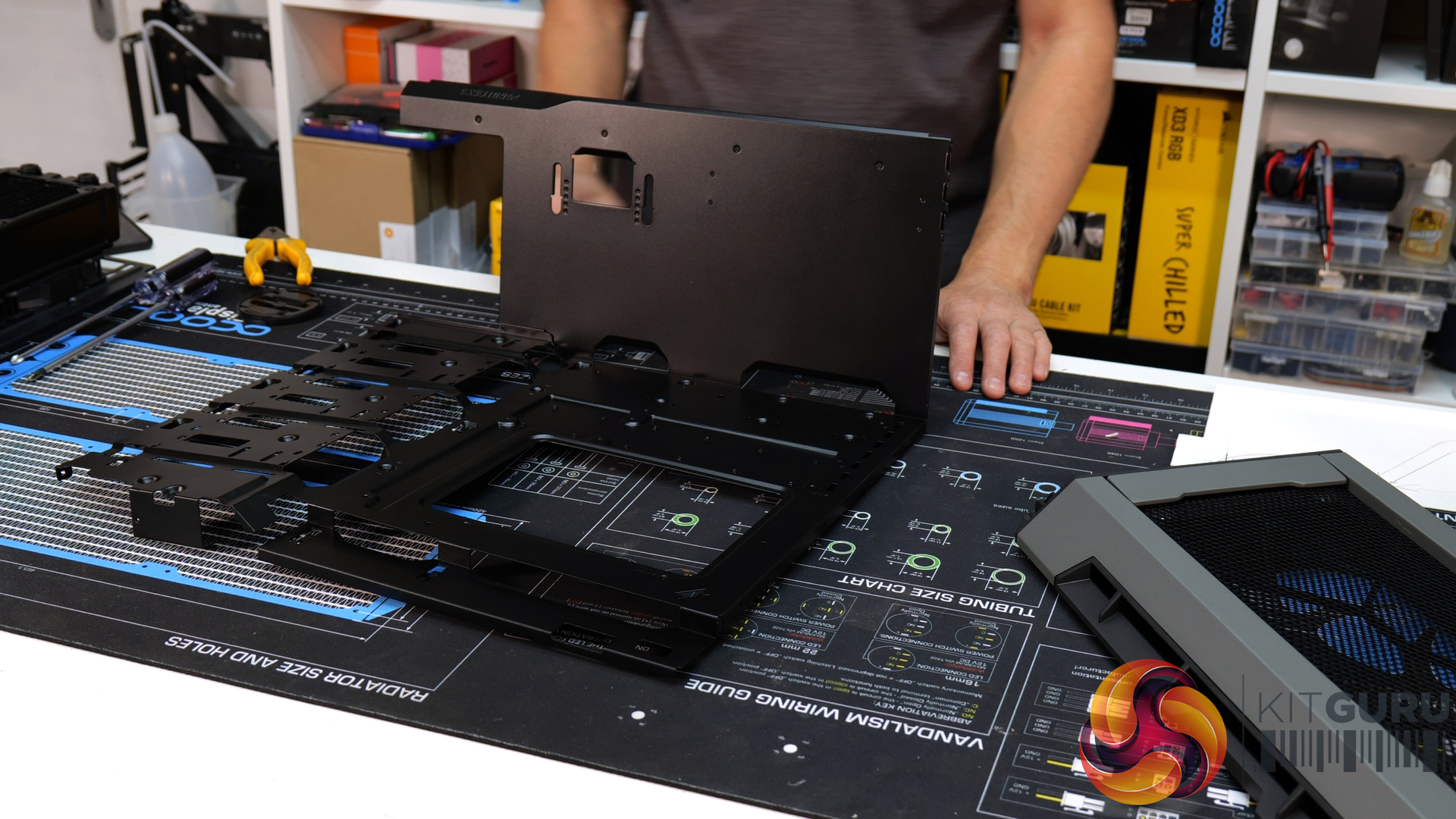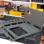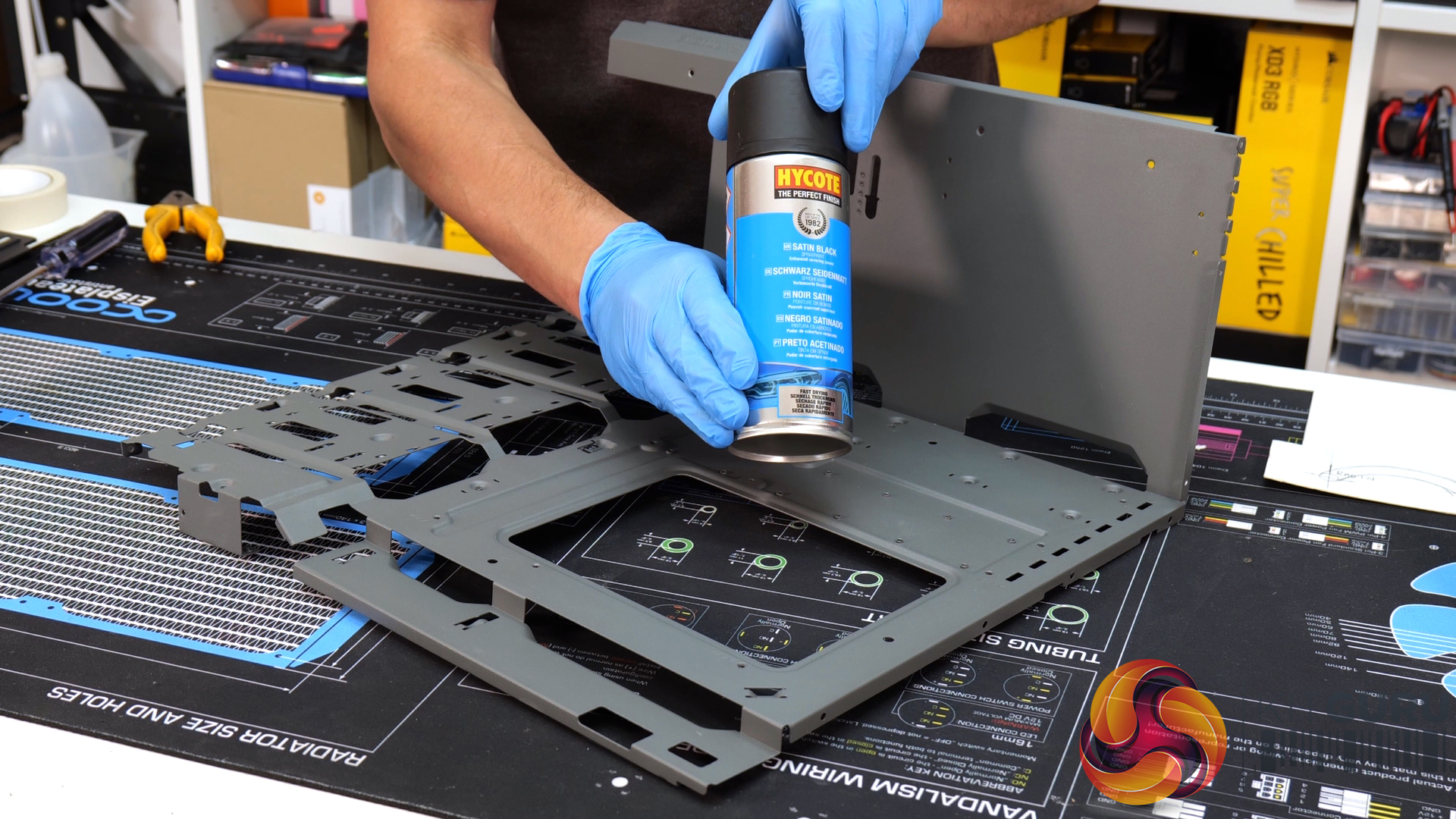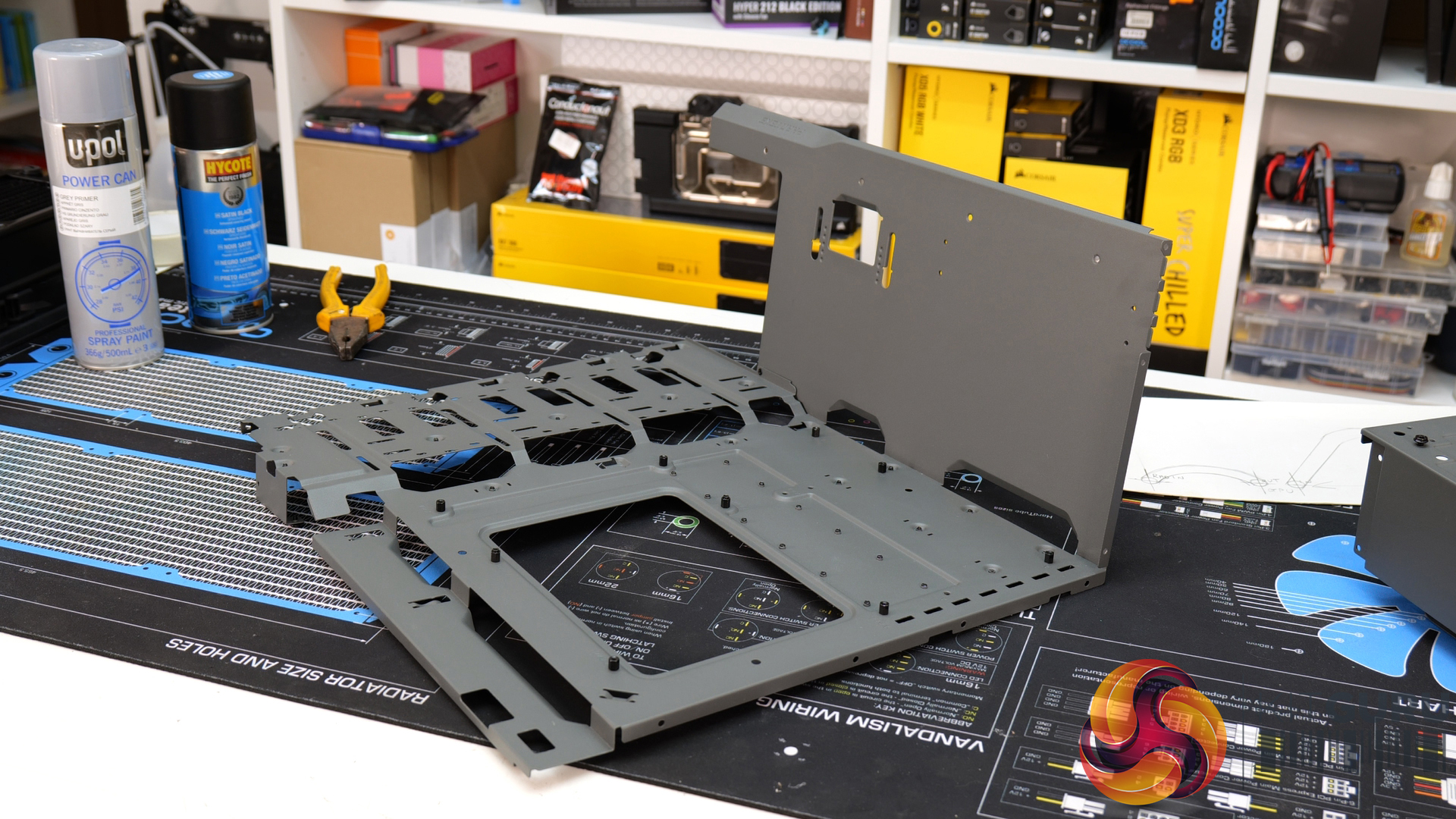 The motherboard tray was treated with a coating of spray primer, then finished with a satin black spray paint coating to match the internal blackout theme. As well as hydro dipping and painting, the right-hand steel side panel and the central steel front panel have been sent away for laser cutting. The right-hand panel will have a WD_Black laser-cut logo and a WD logo on the front panel, both logos will be backed with bright coloured acrylic to help them stand out.
