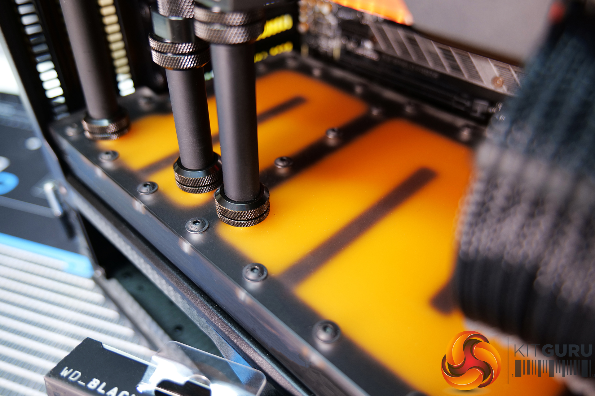 All these improvements mean that the finished distro plate is leak-free, it fits perfectly on top of the Phanteks P600S power supply shroud and all the inlet/outlet ports line up as they should. This leads me on nicely to the final build which is what we have all been waiting for. Because of the distro plate fitting and lining up with system components perfectly, it made building the system and the custom loop extremely simple, only three bends were needed in the satin black tubing which produced a very clean looking design.