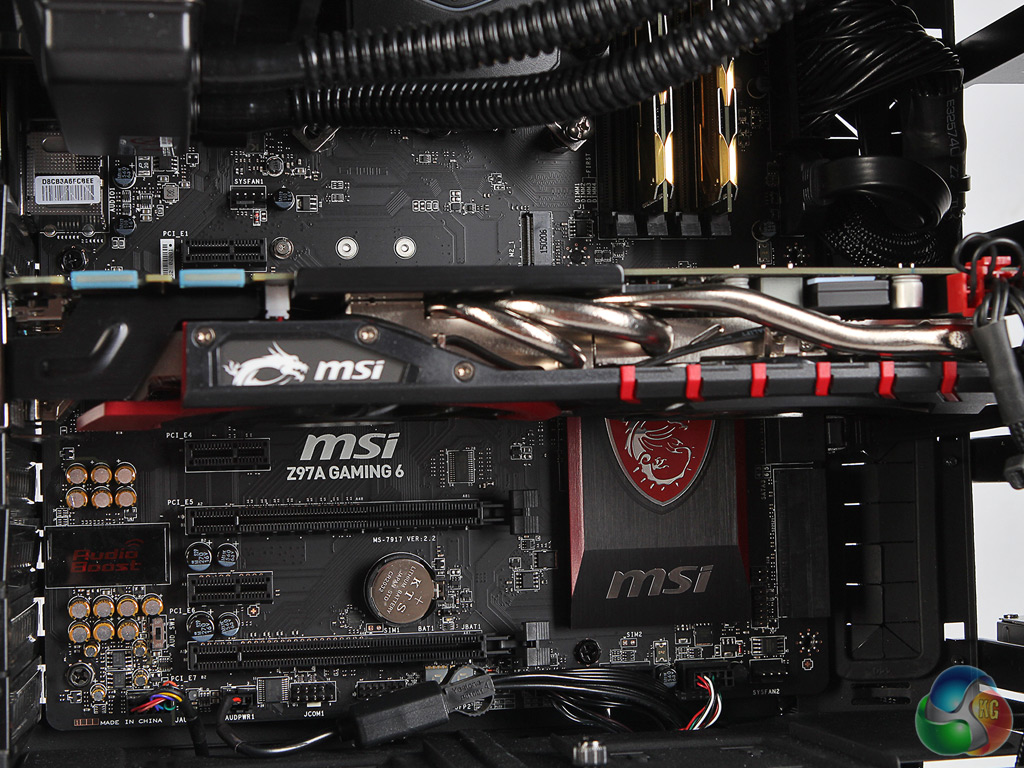 As this is a 4000-series Intel Haswell, only dual-channel DDR3 rather than quad-channel DDR4 memory is supported. Mesh has still supplied fast examples of the type, though, in the form of two 8GB 2,133MHz DIMMs, leaving a couple of slots free for future upgrade to the 32GB maximum afforded by the MSI Z97A GAMING 6 motherboard.