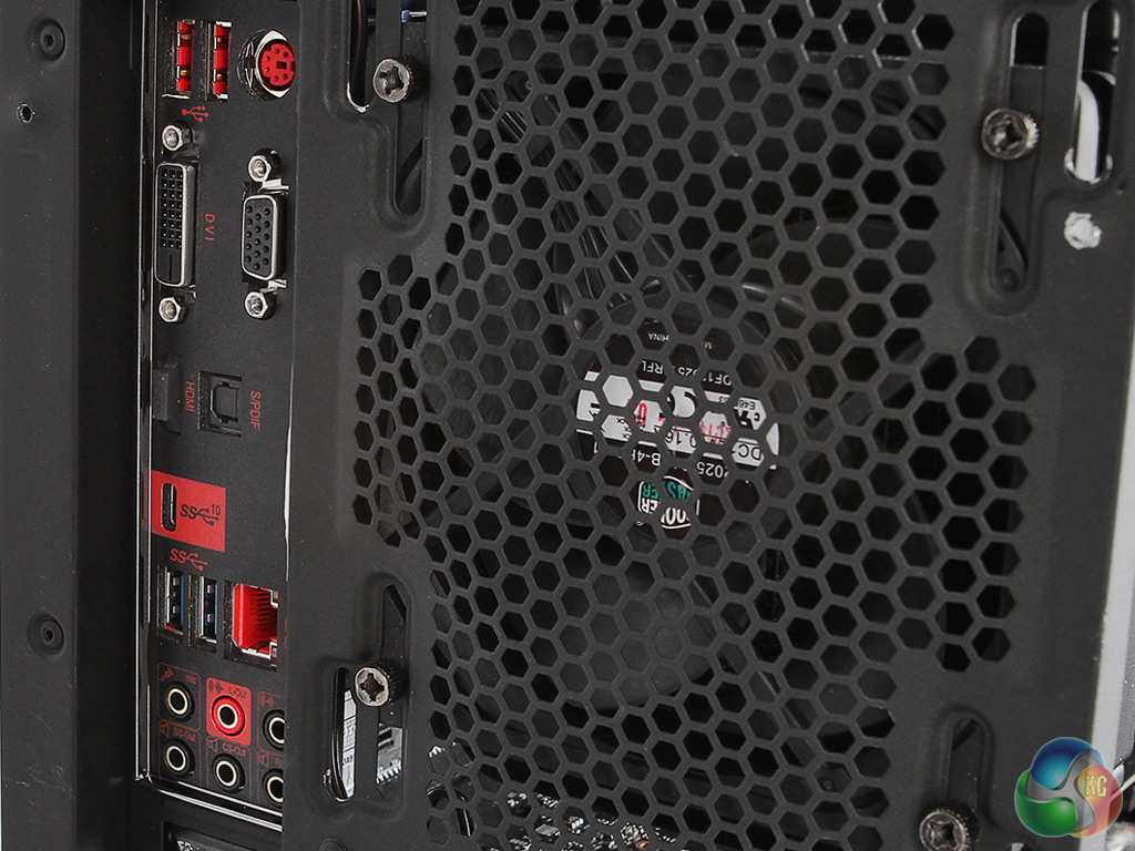 On the rear there is a PS/2 mouse port still included, alongside the two USB 2.0 ports you're more likely to use for connecting the main input devices. The graphics ports beneath this are best ignored, as they would be for use with the integrated graphics of the Intel CPU. Beneath that is a single USB 3.1 Type C port, which looks like microHDMI but introduces a USB connection that is universal, rather than being the previous Type A at one end and Type B at the other.