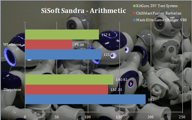 However, our reference system's 2,400MHz memory beats the 2,133MHz memory in the Mesh Elite Game Changer 980, although the latter still beats the 1,600MHz DDR3 in the Chillblast. Overall, the memory scores are precisely as we would expect.
