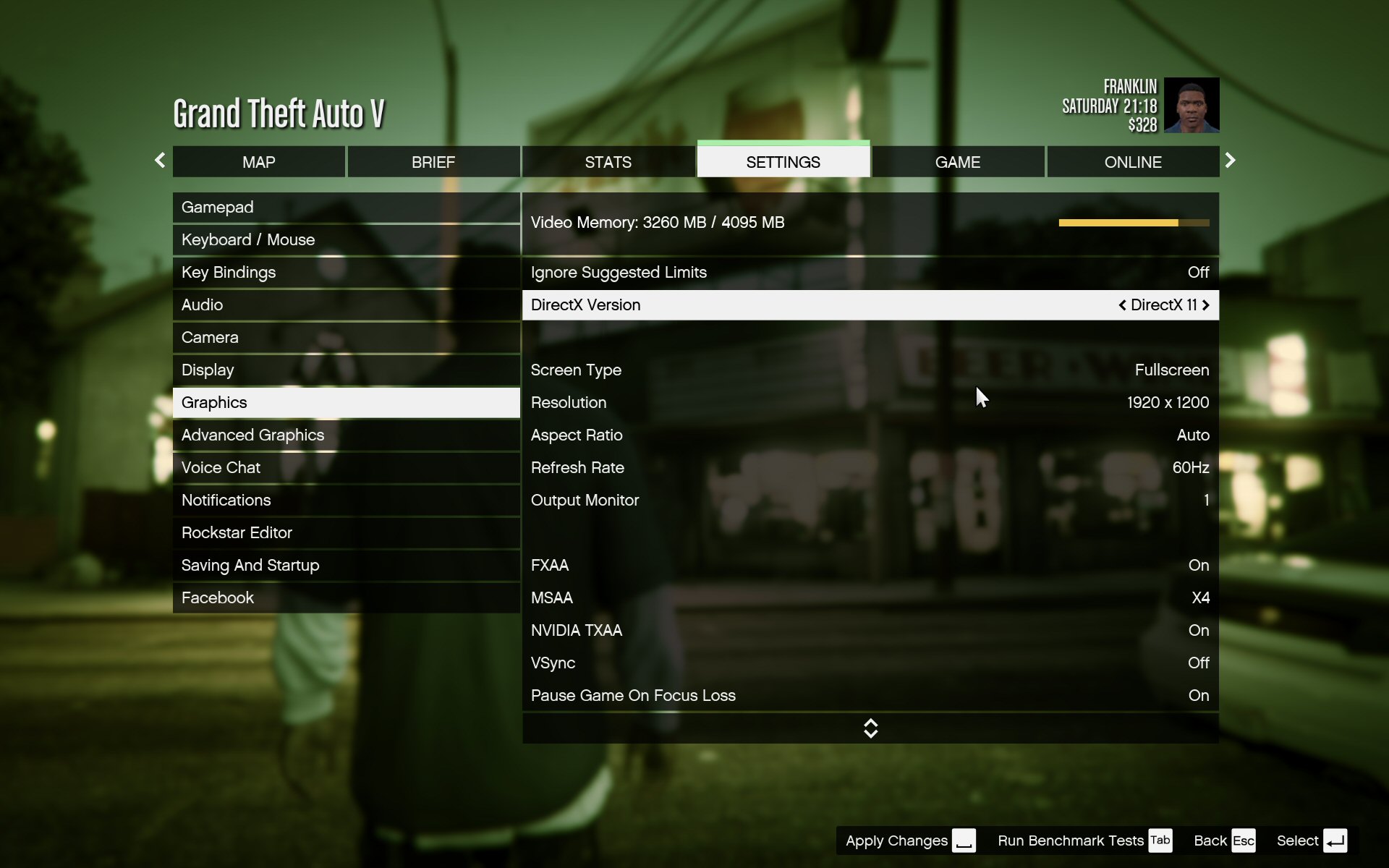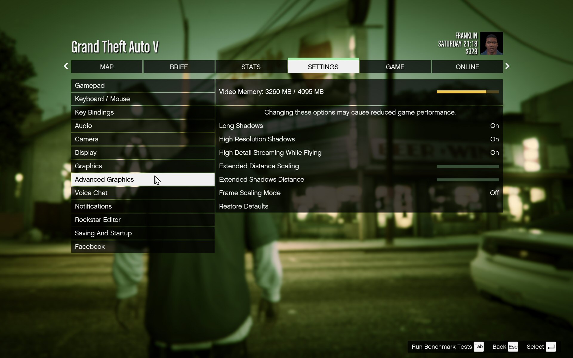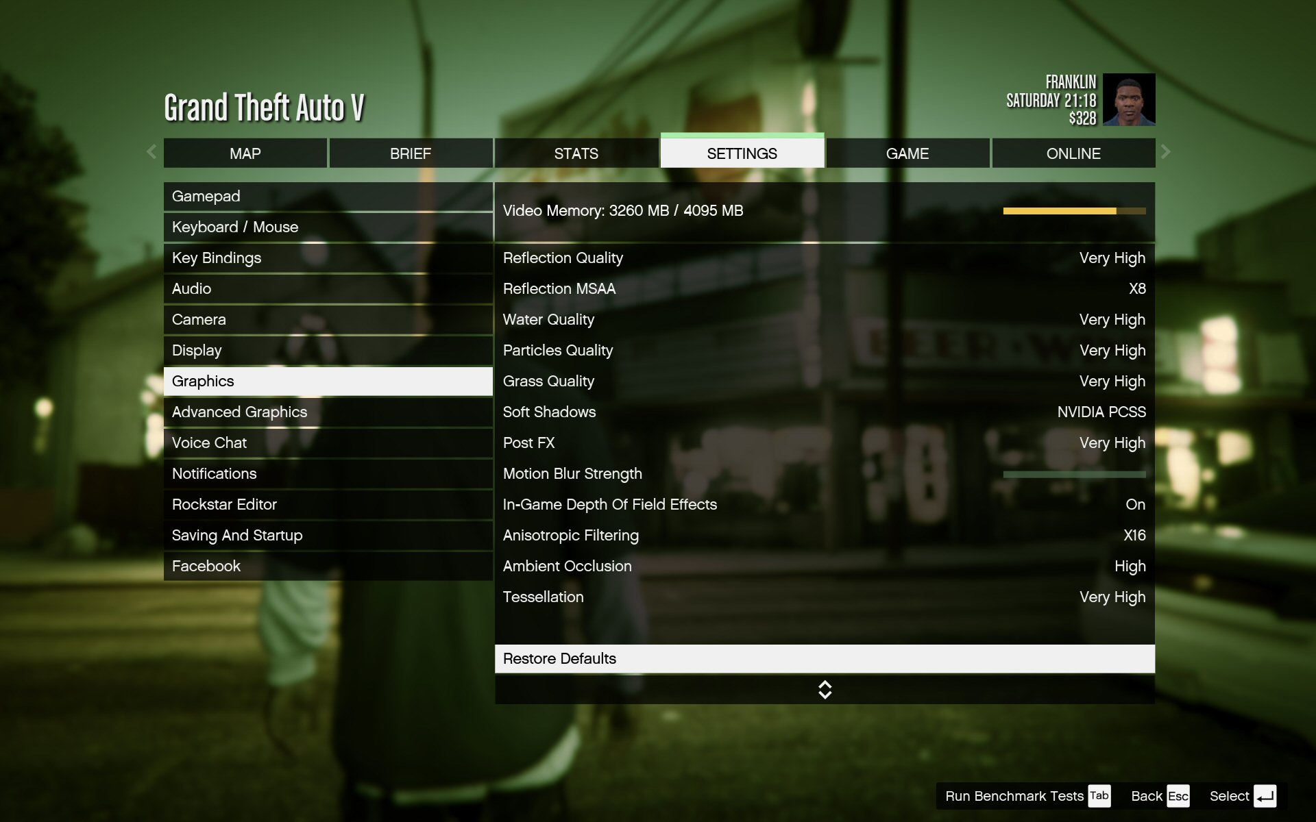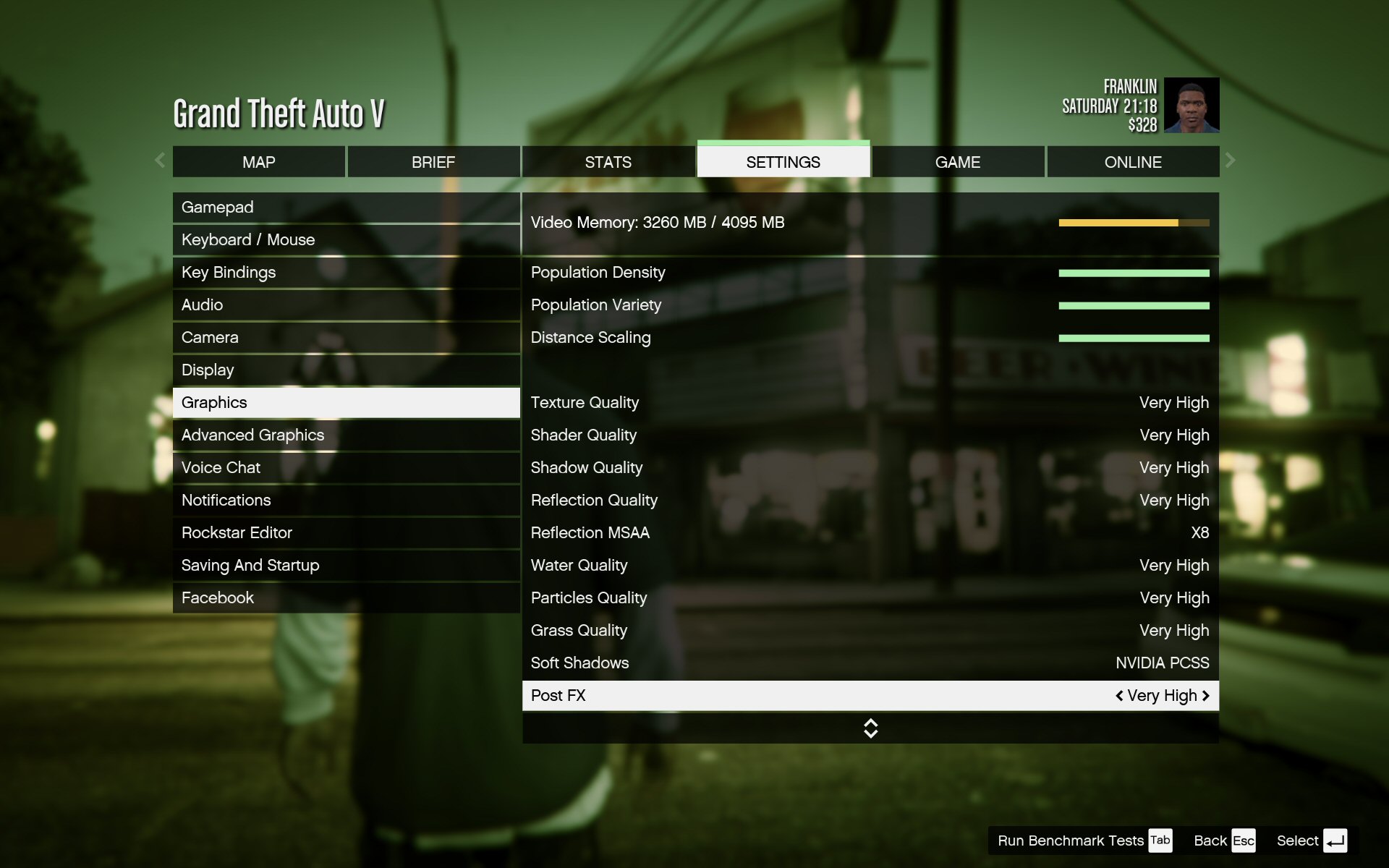 We don't have any systems to compare this to, but it's clear that this very grueling game is eminently playable at the maximum settings in HD. The handy GTA V memory allocation bar shows there's plenty of headroom left from the 4GB available on the GTX 980 graphics, whereas a 3GB card would be struggling at these settings.
